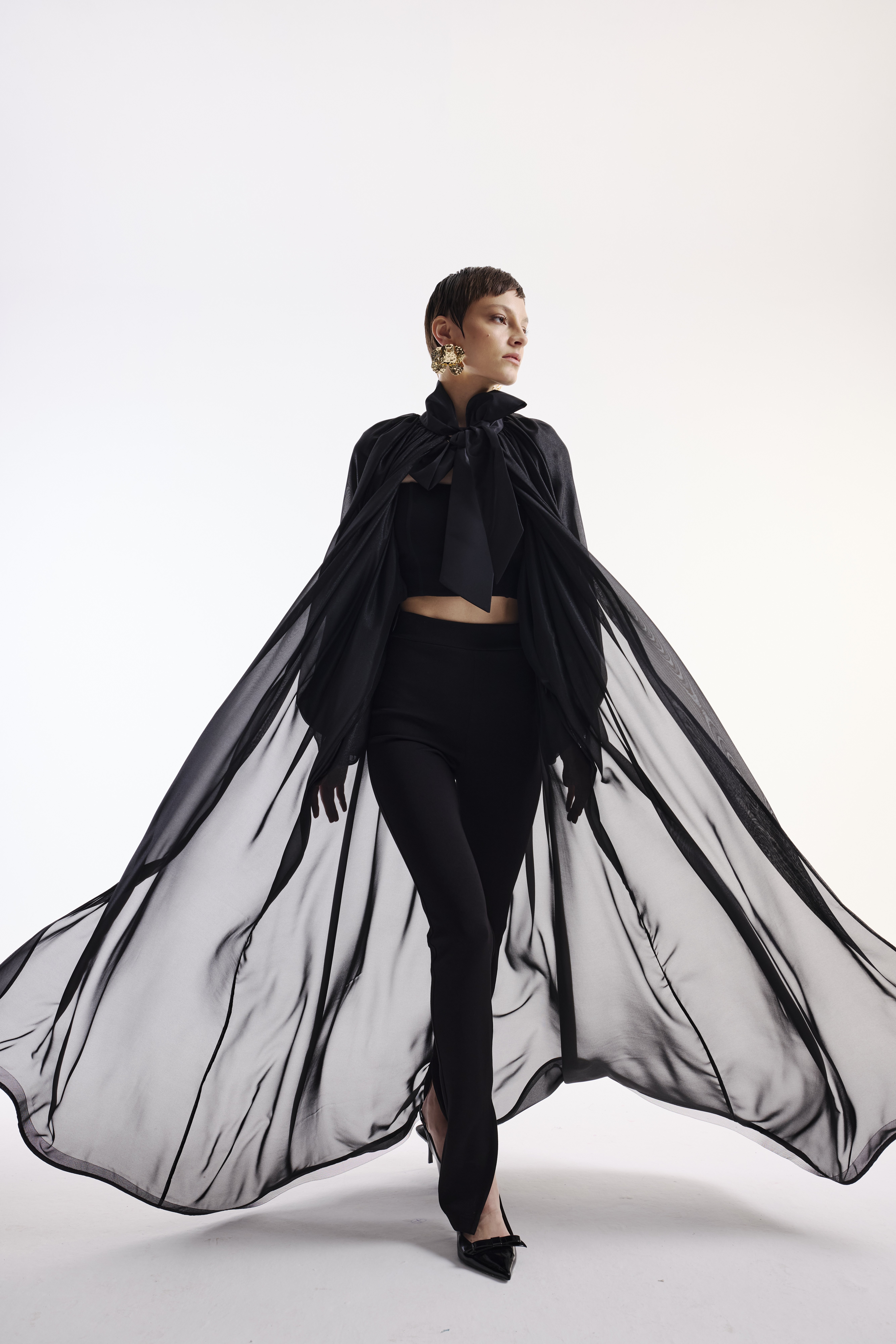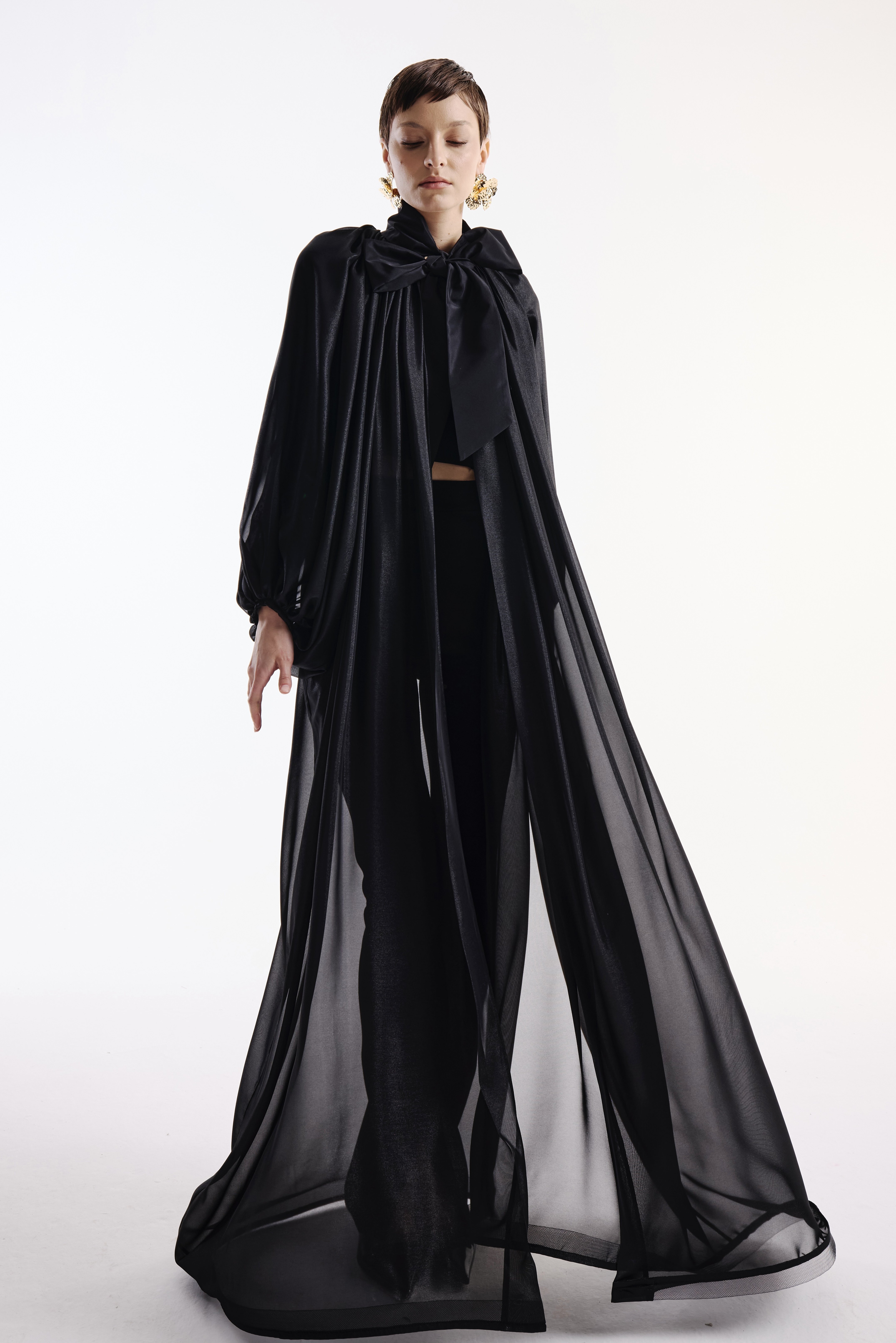 Şifon Pelerin Tafta Fiyonk Detaylı