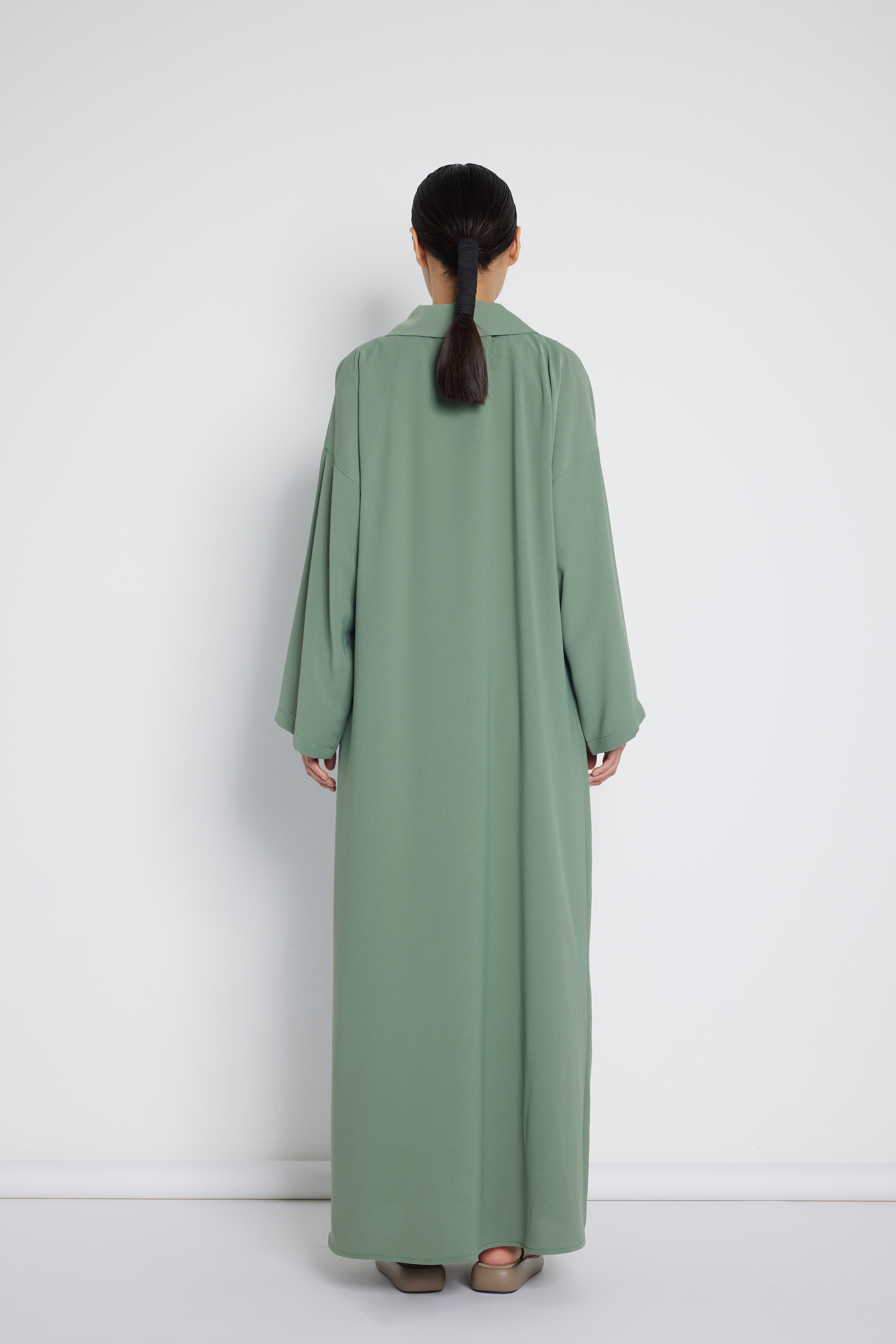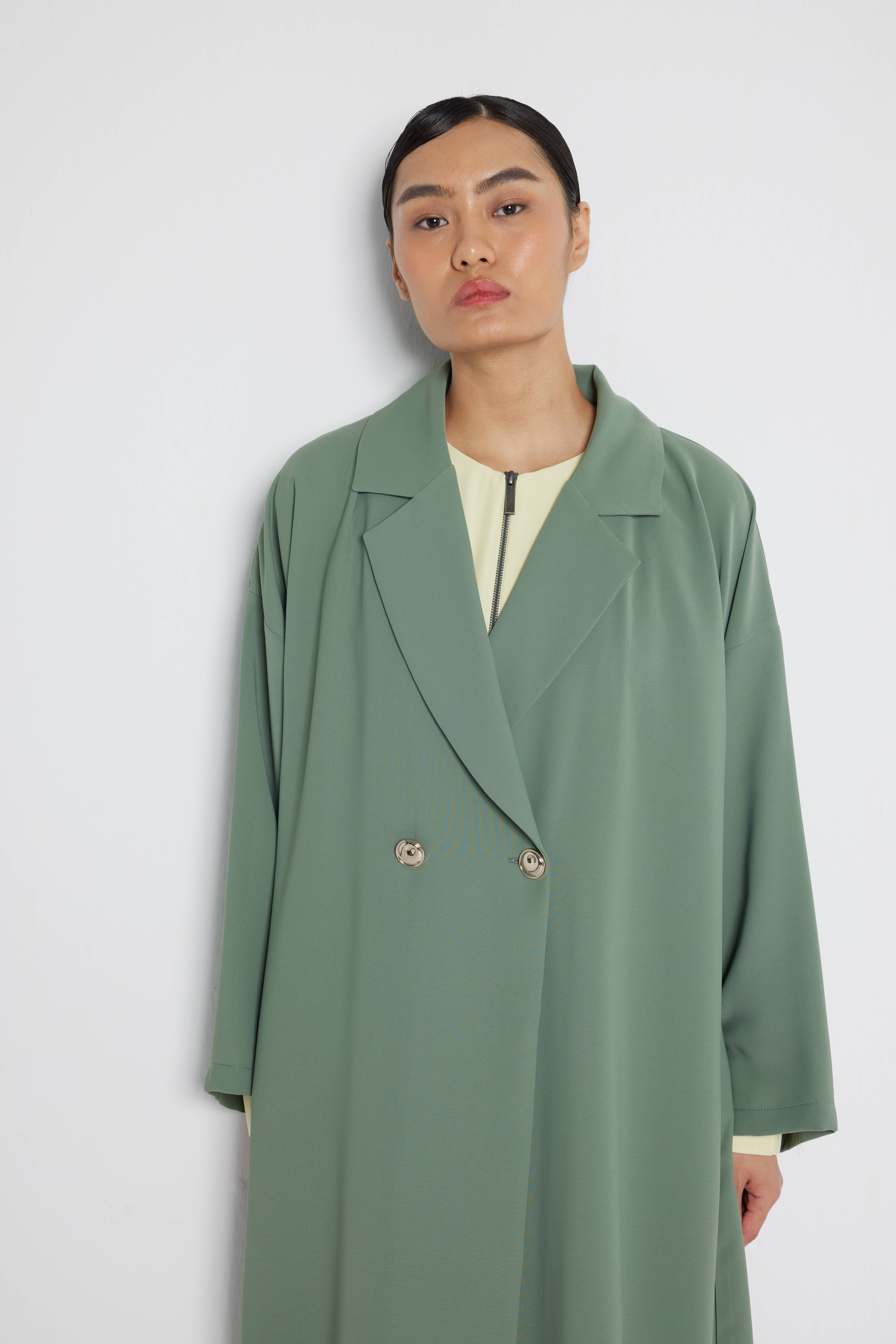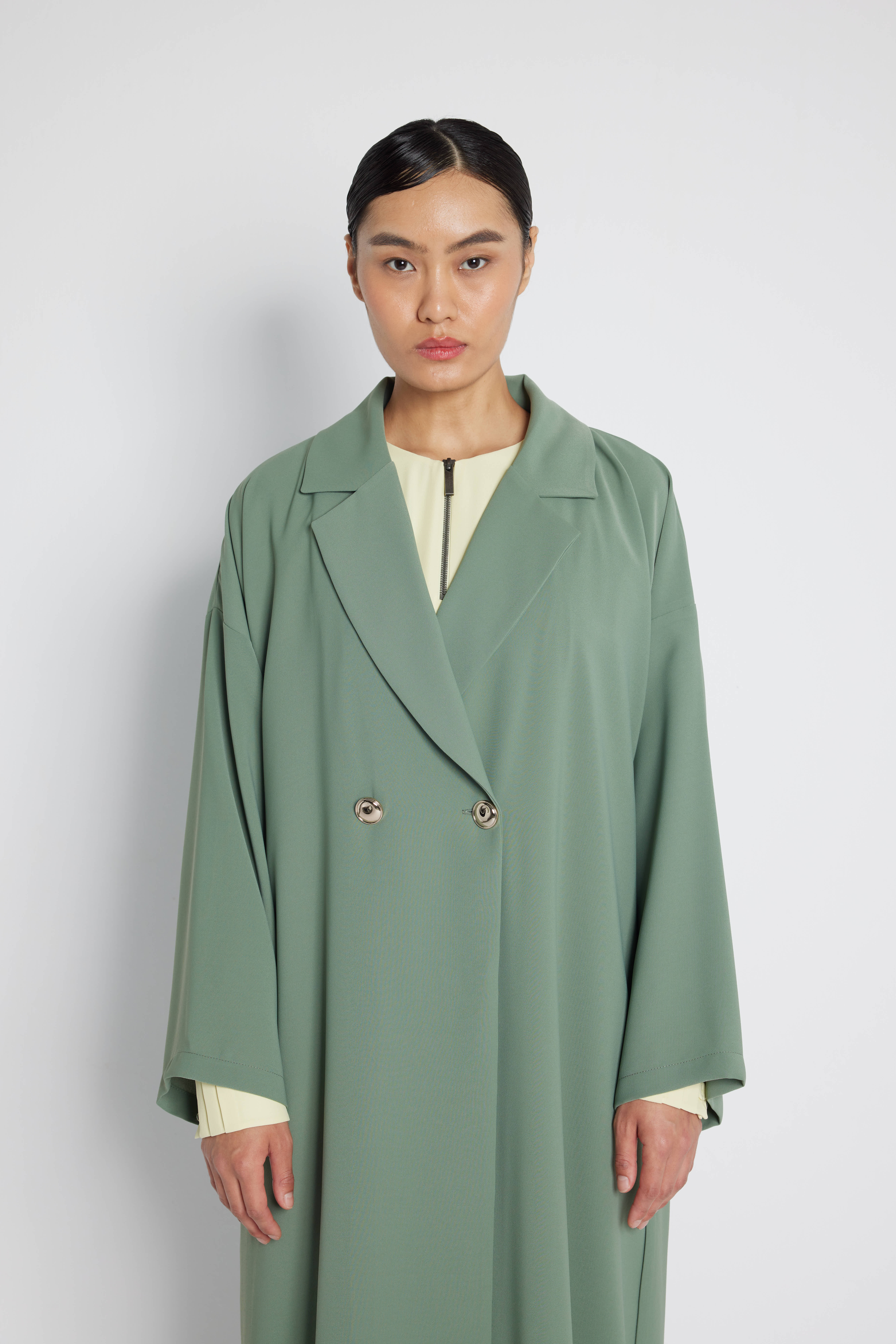 Double Breasted Abaya with Metal Buttons Mold Green
