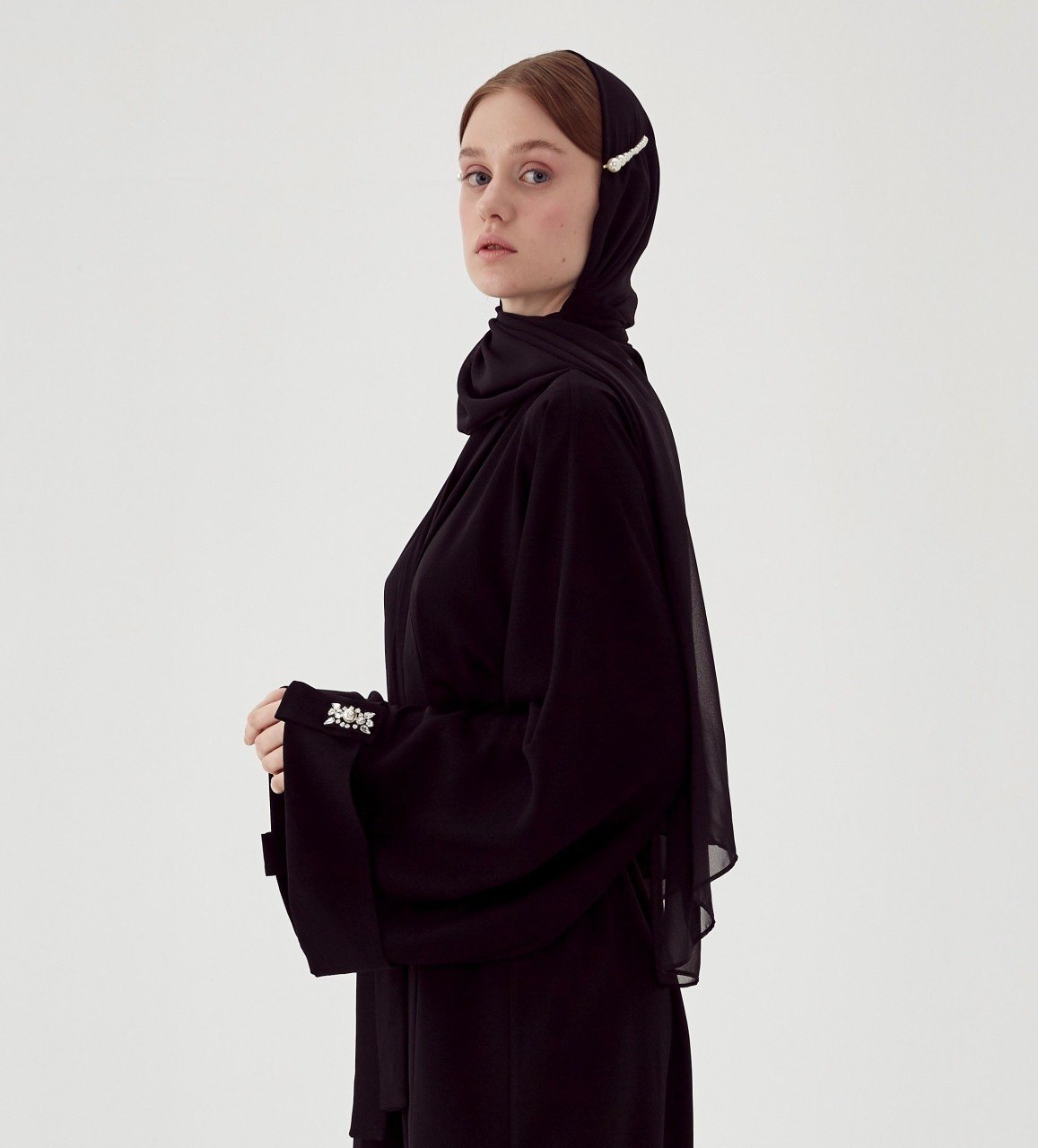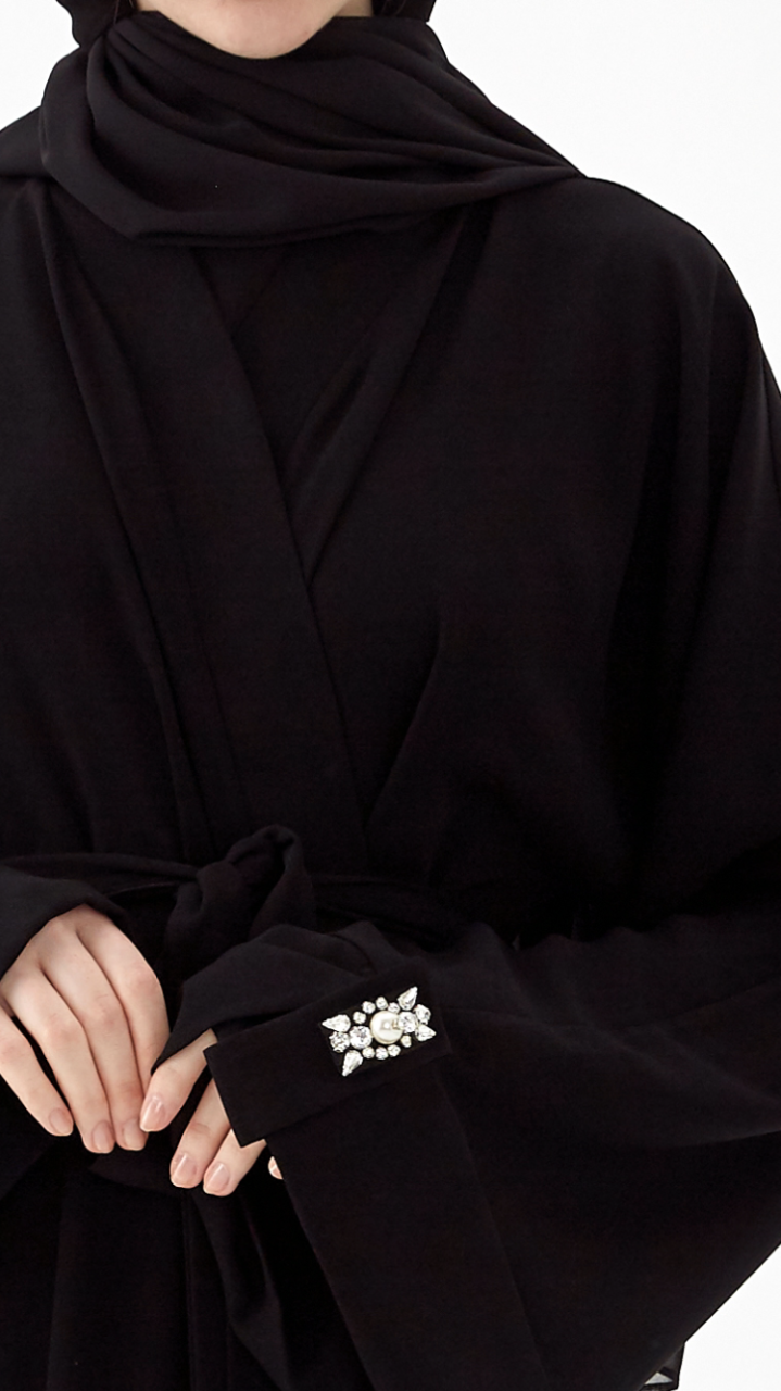 · abaya · relaxed fit · V-neck . stonework handicraft |