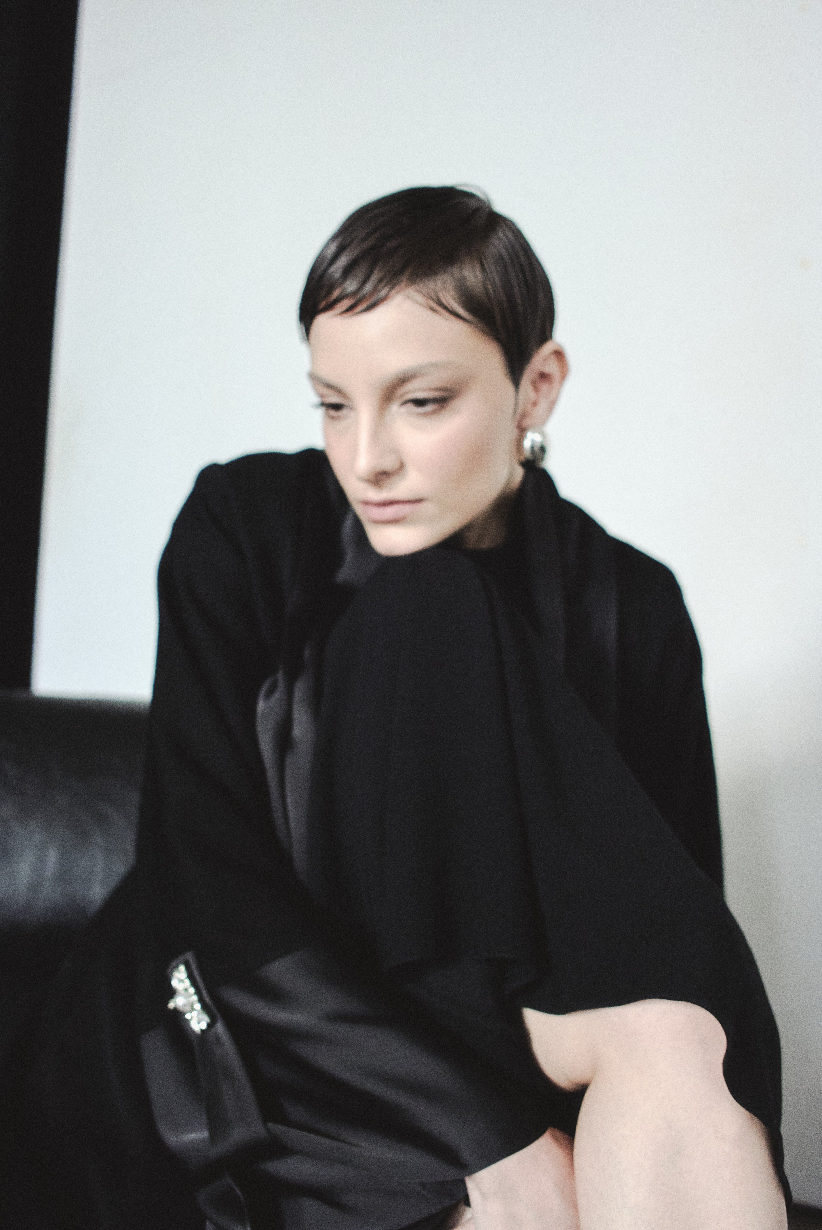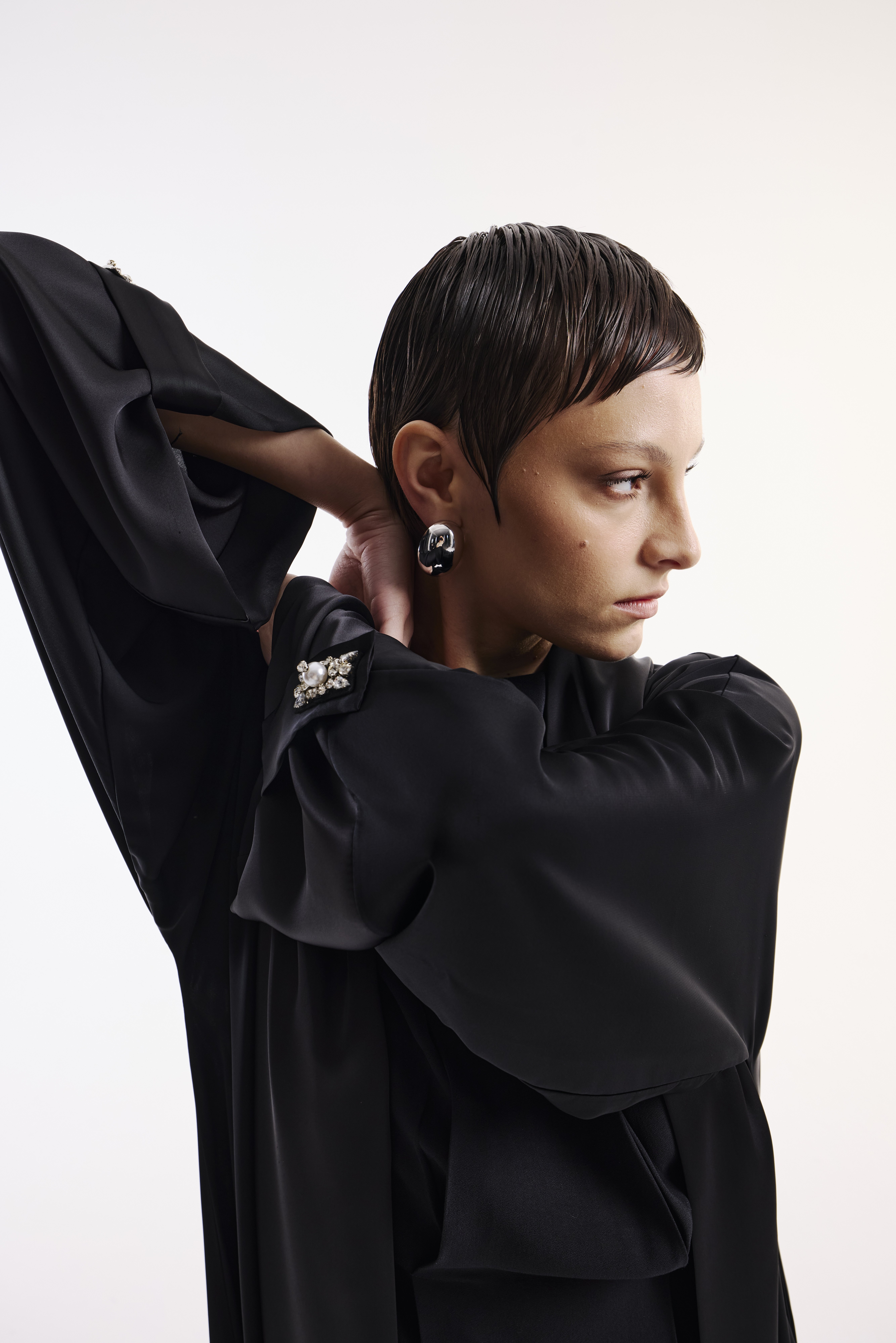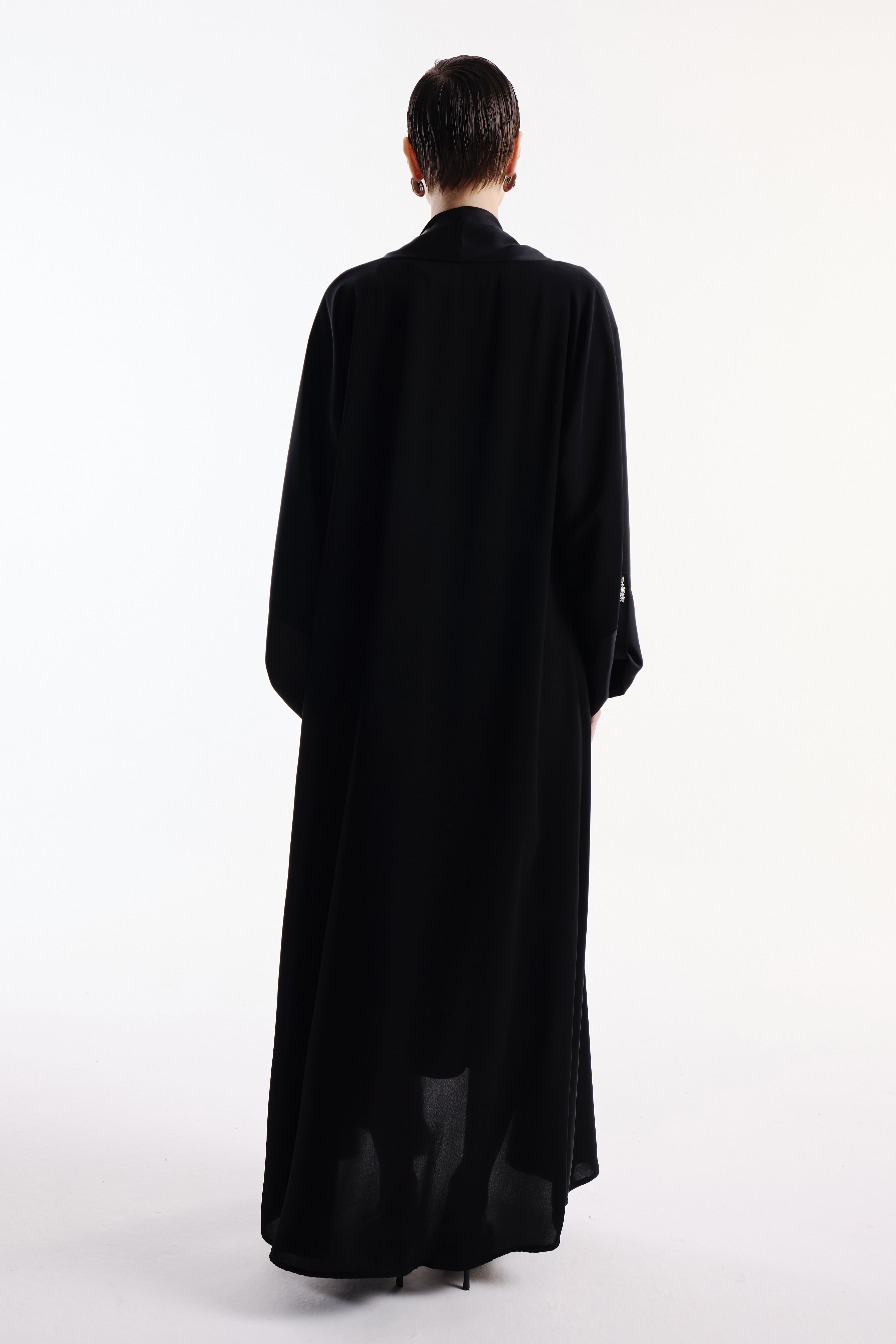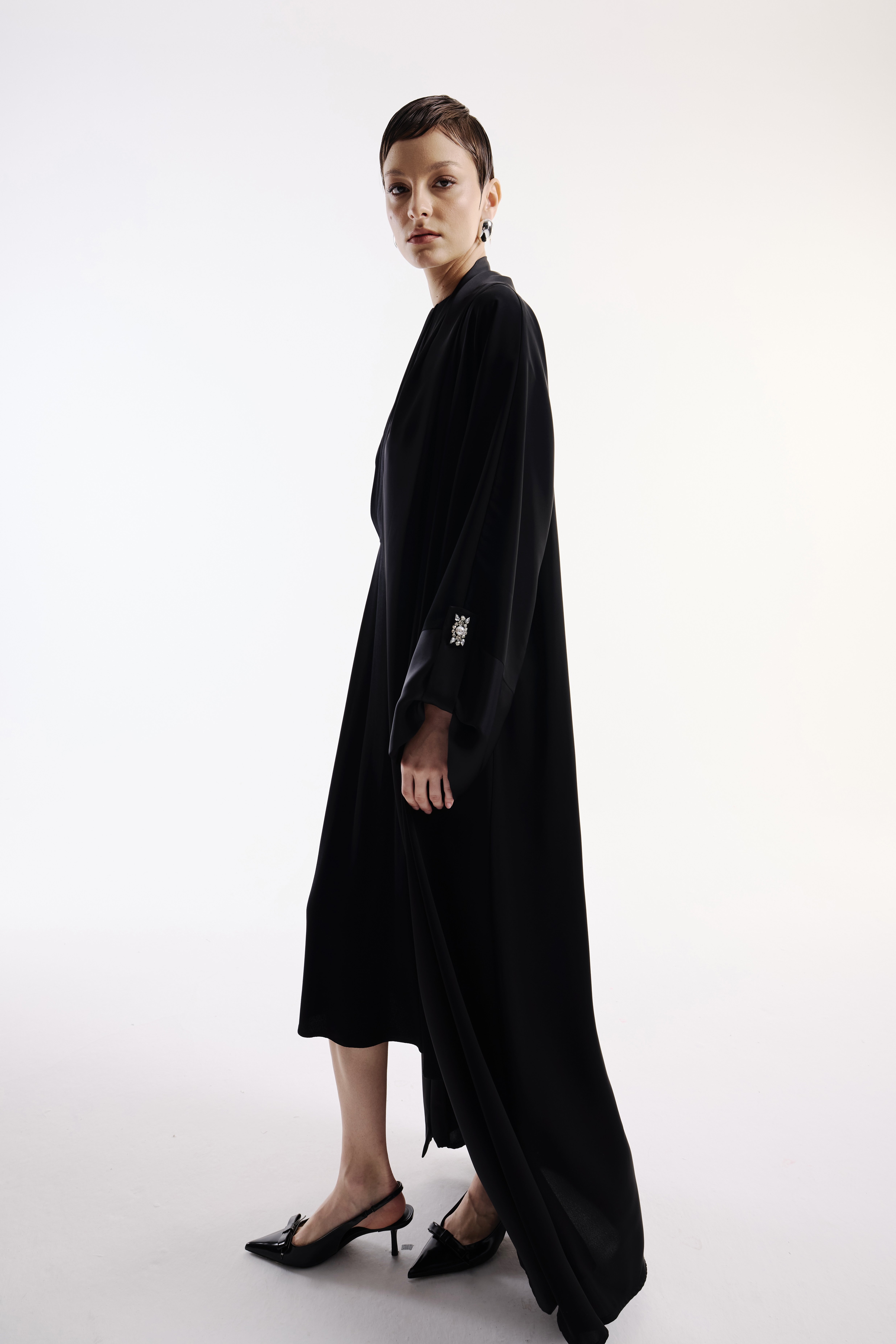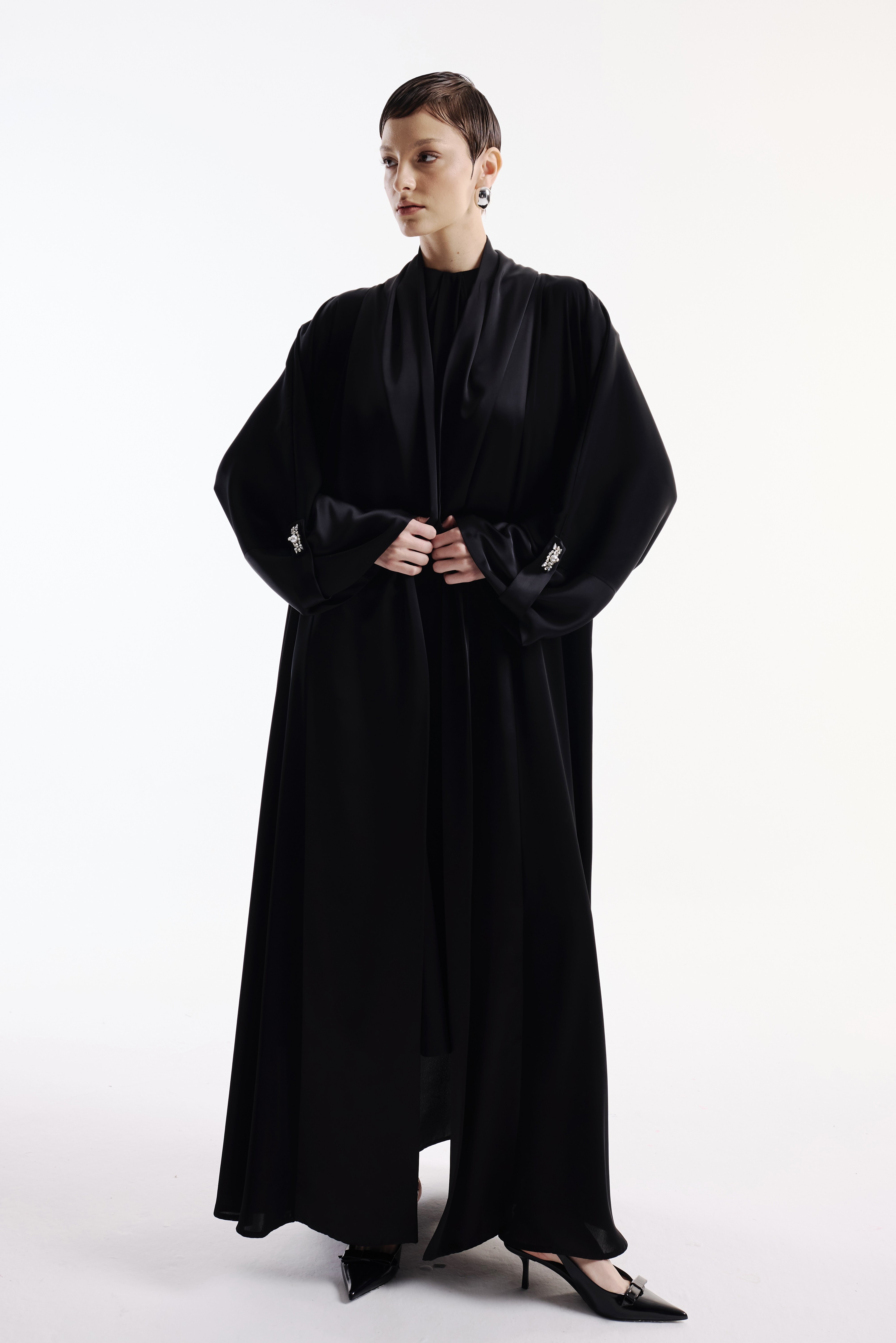Saten Garnili Apolet kol Taş İşleme Detaylı Abaya