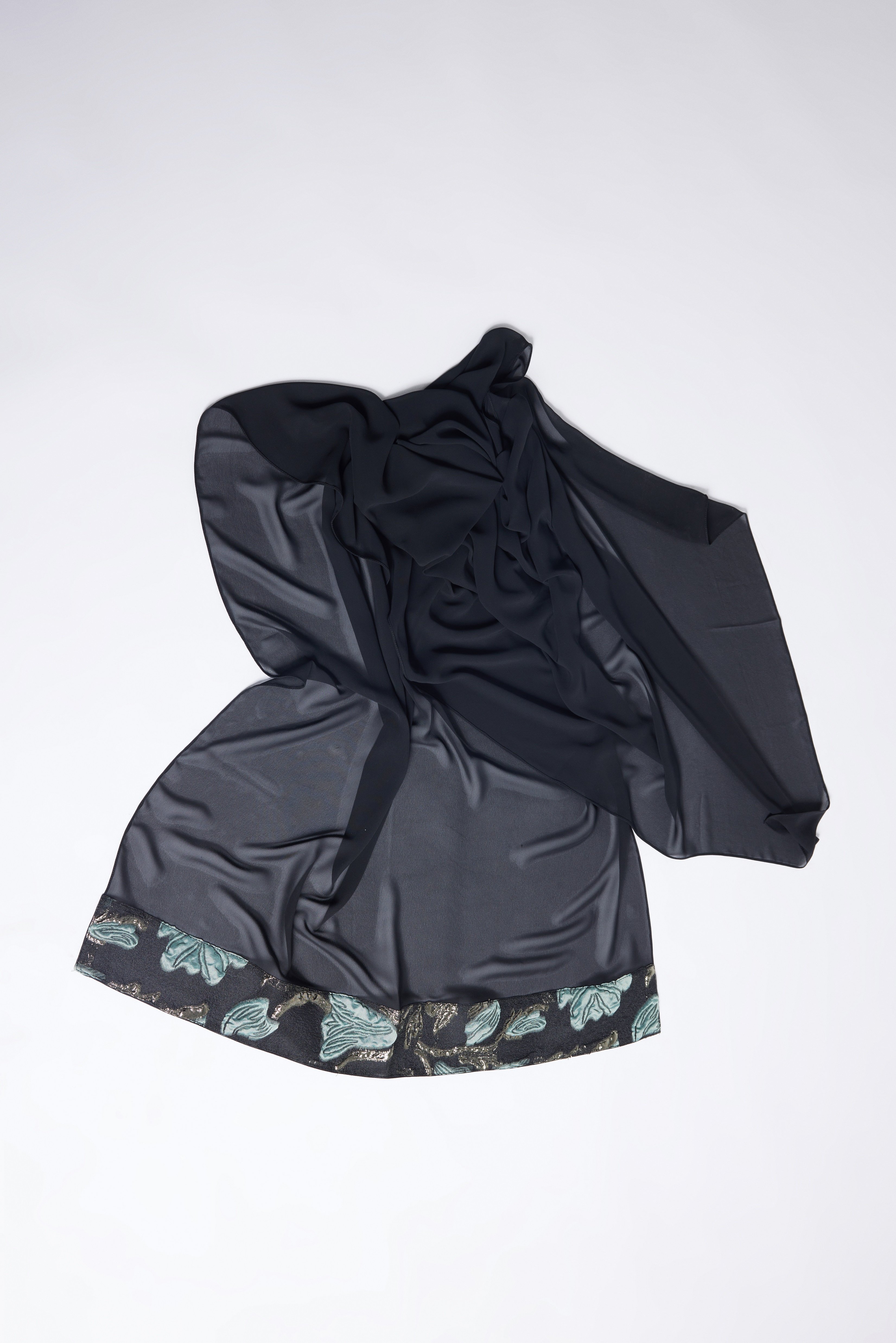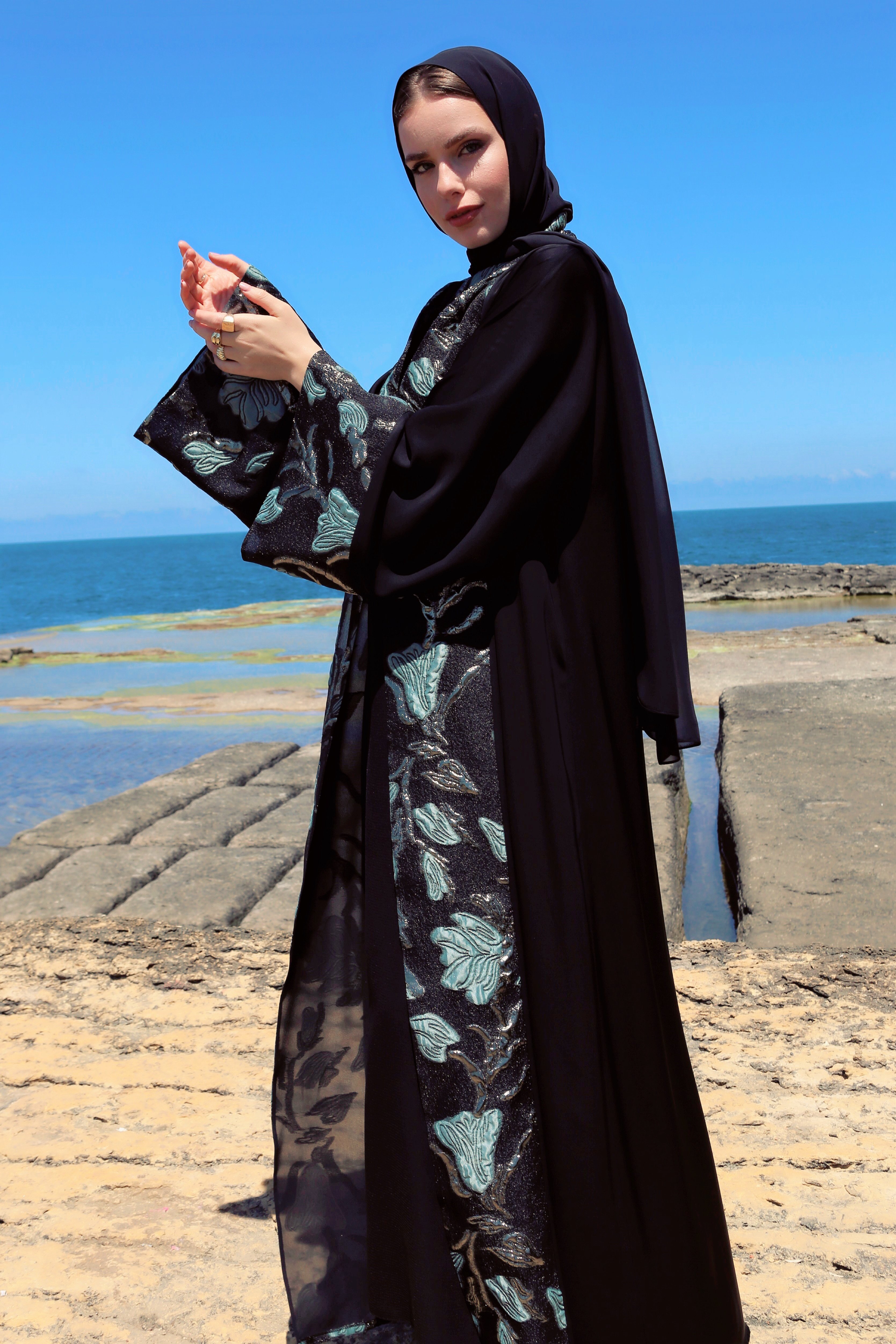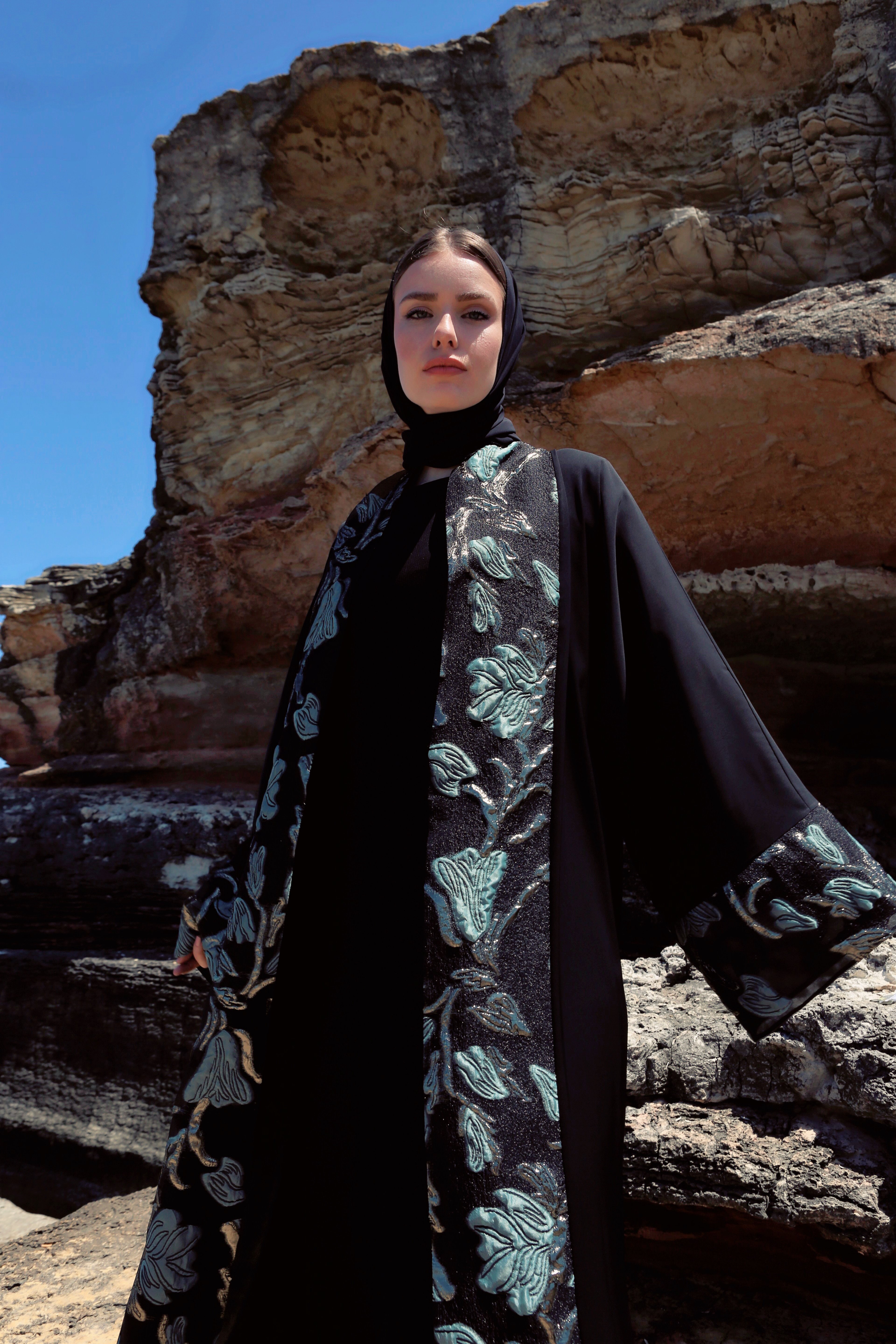 Brokar Garnili Abaya Siyah + Şal