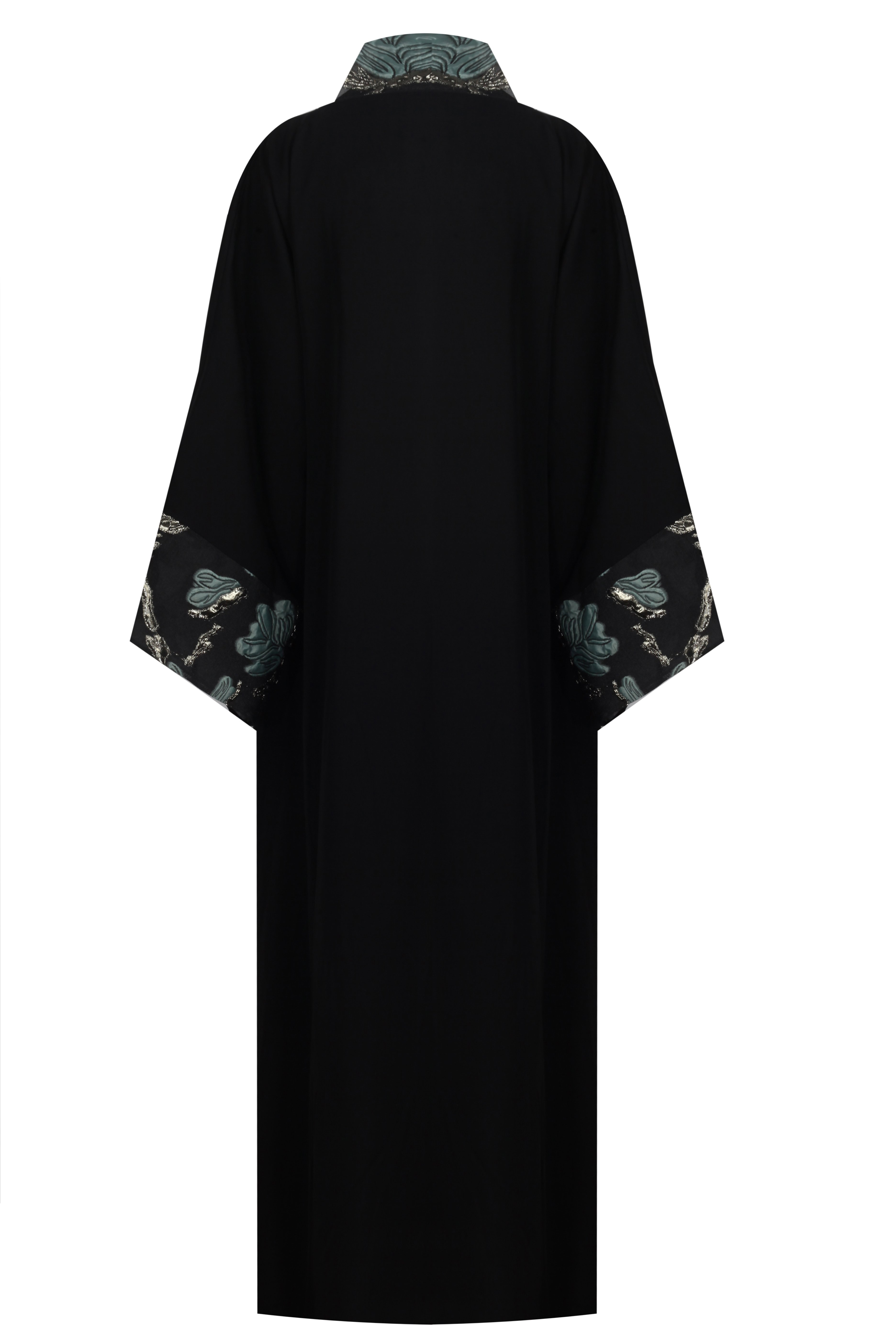 Caractéristiques du produit : Détail de garniture en brocart, col châle, non doublé, ceinturé
