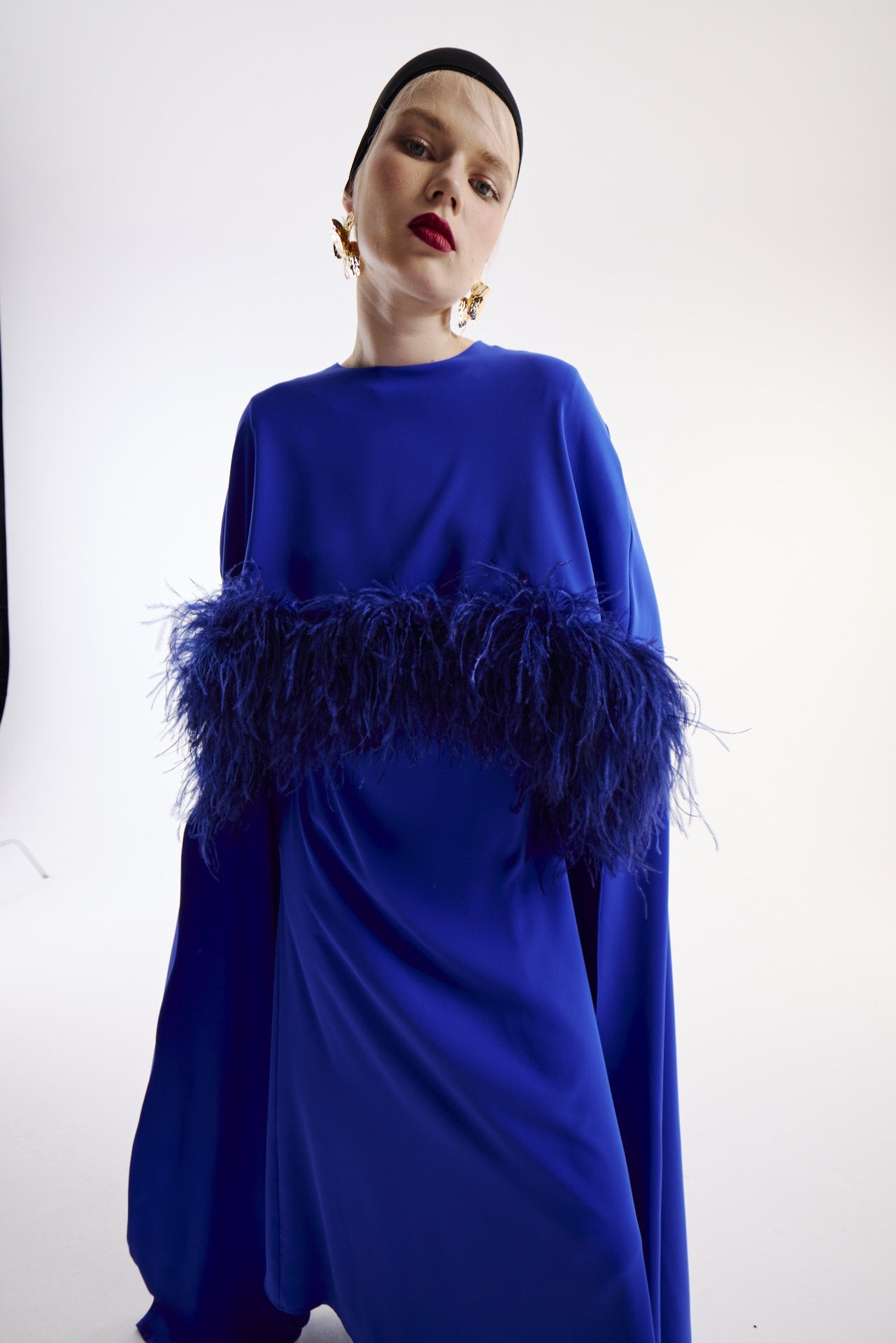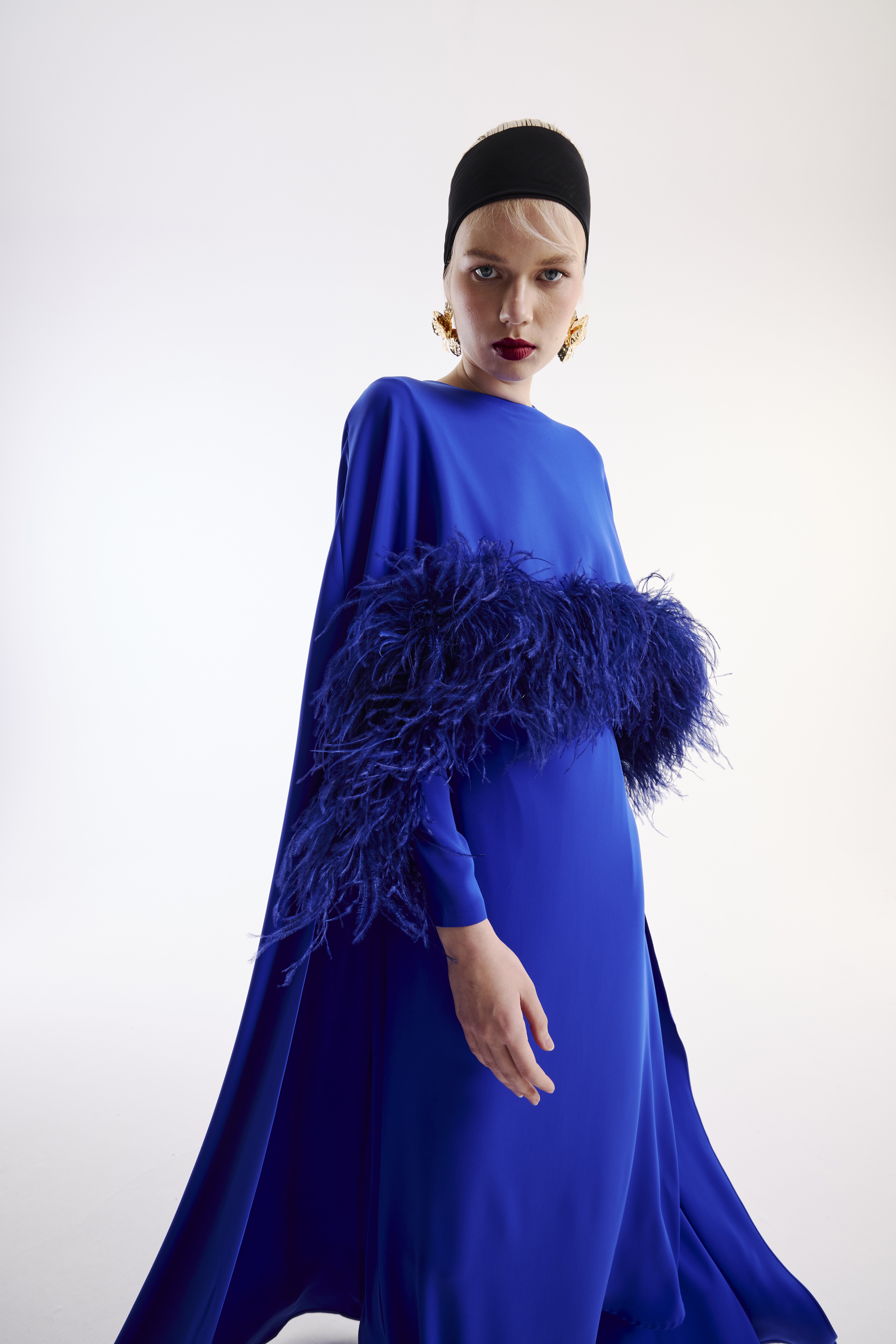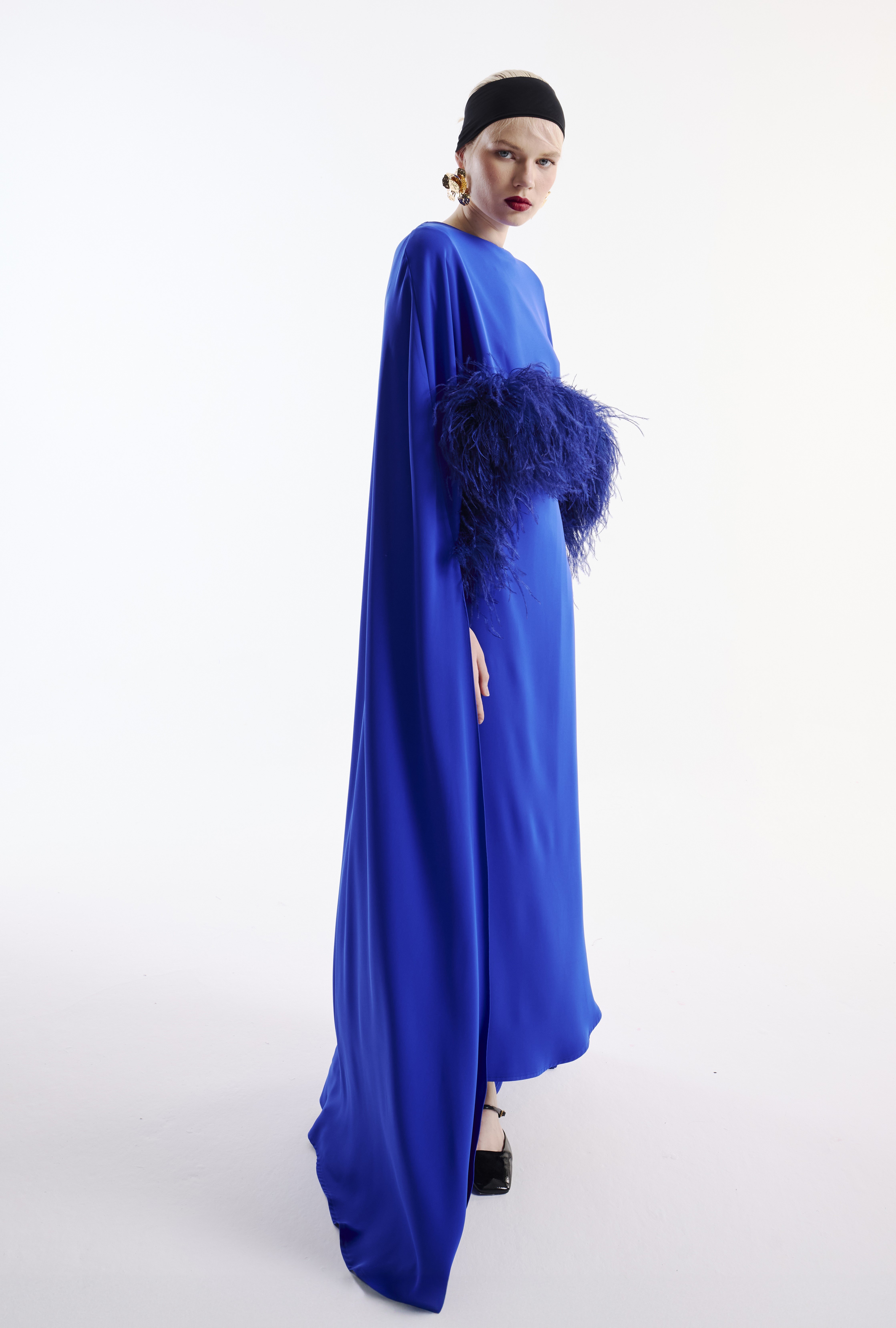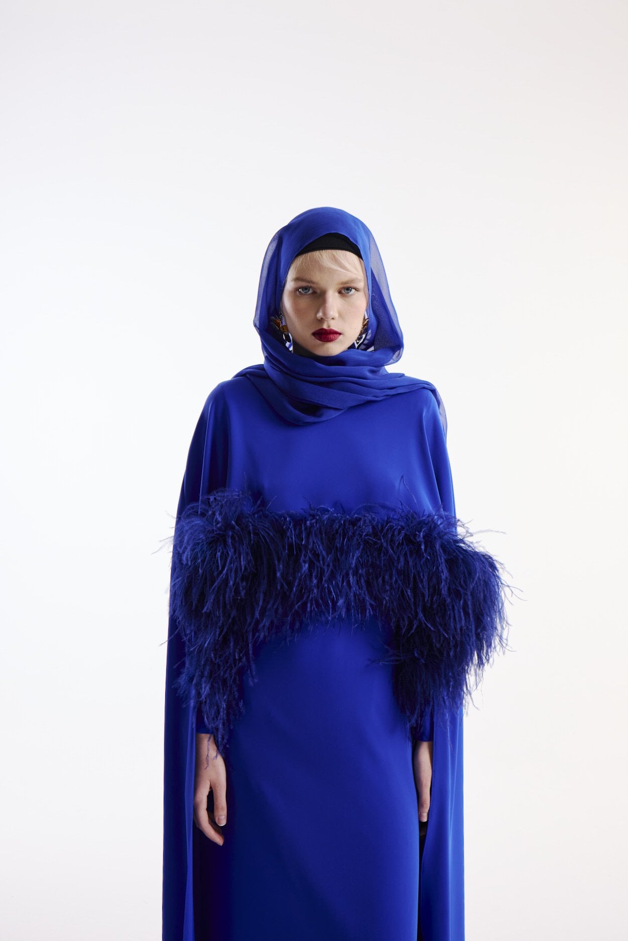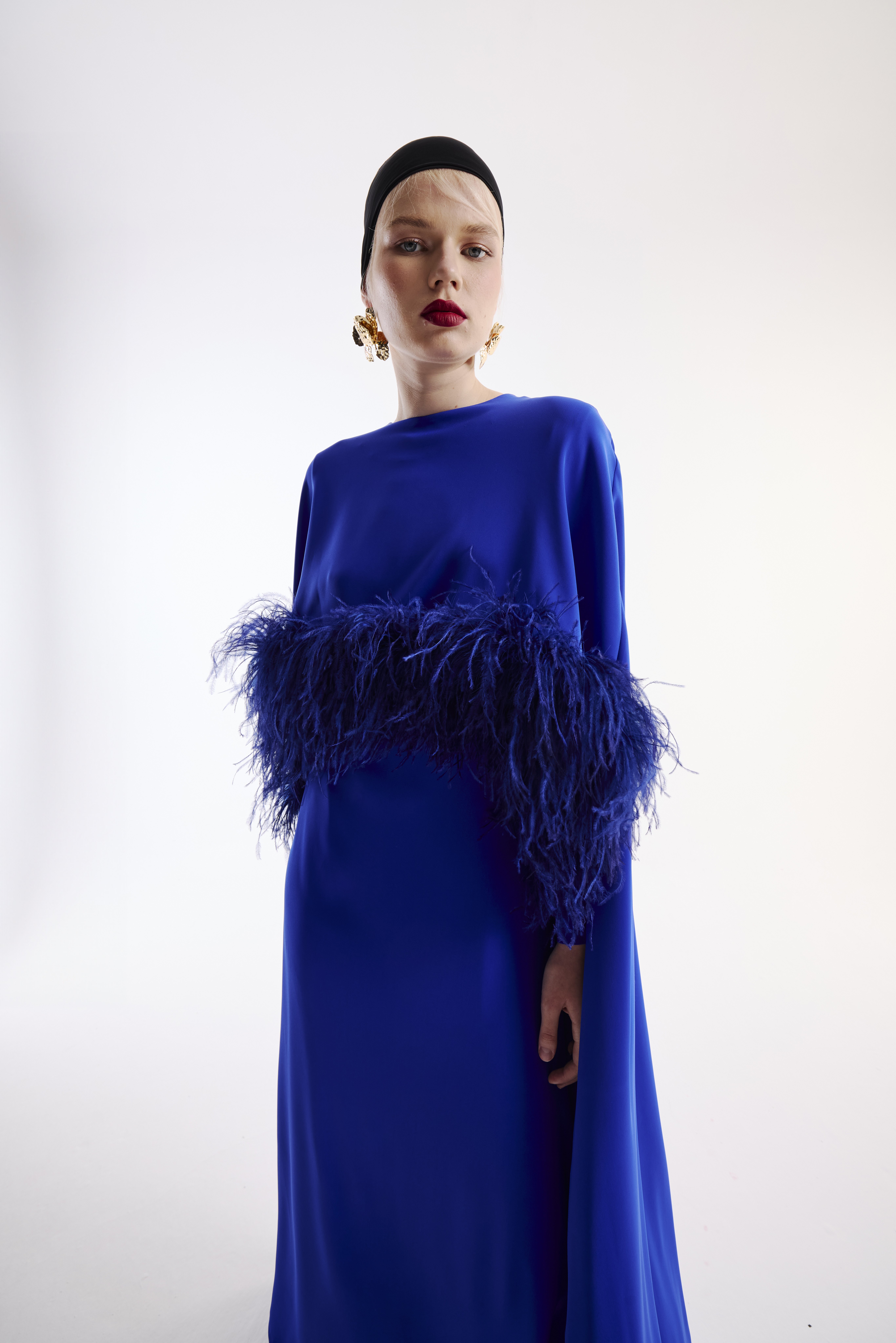 Elbise Pelerin Takım Kuş Tüy Detaylı & Şal