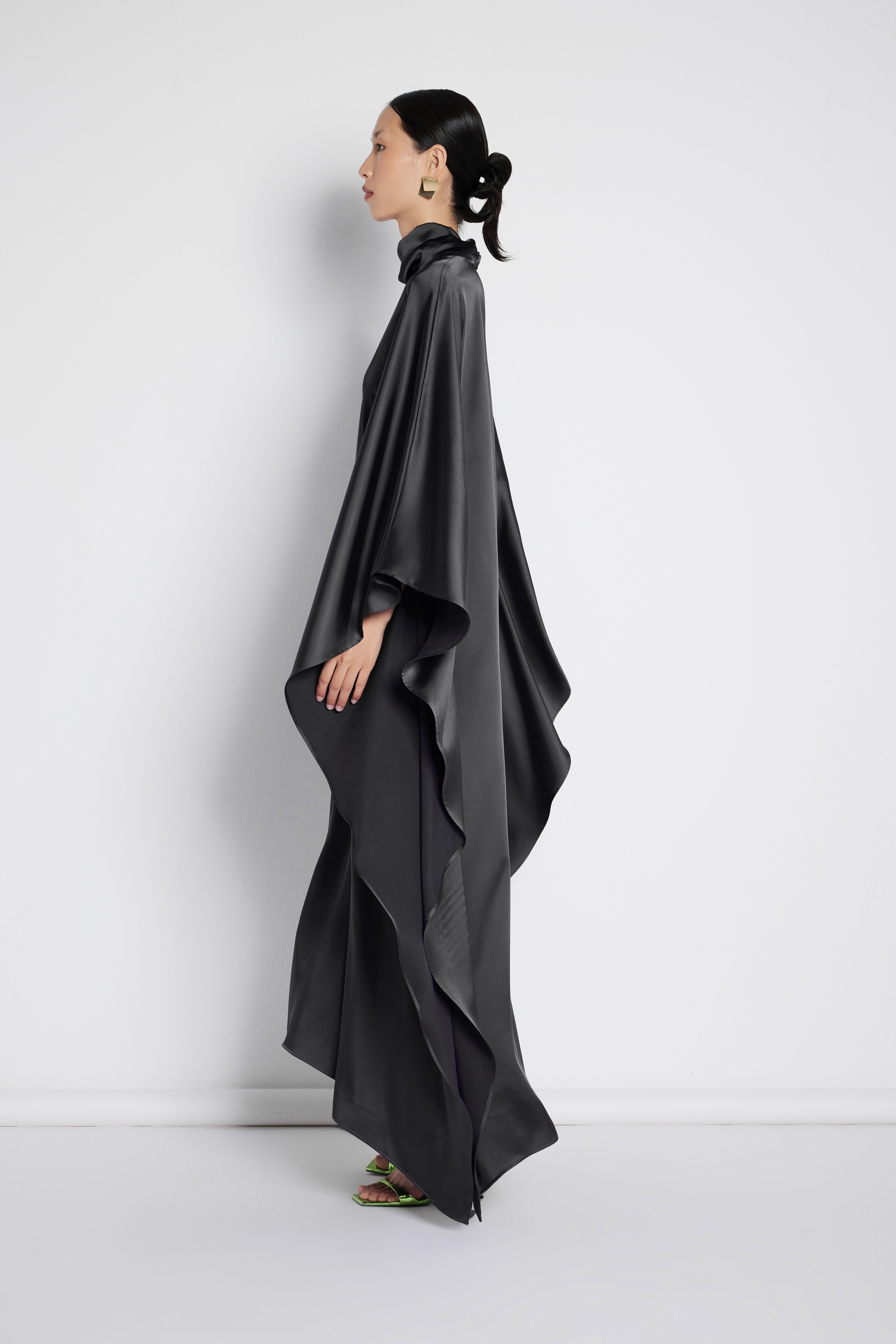 Boyun Bağlamalı Saten Elbise Siyah