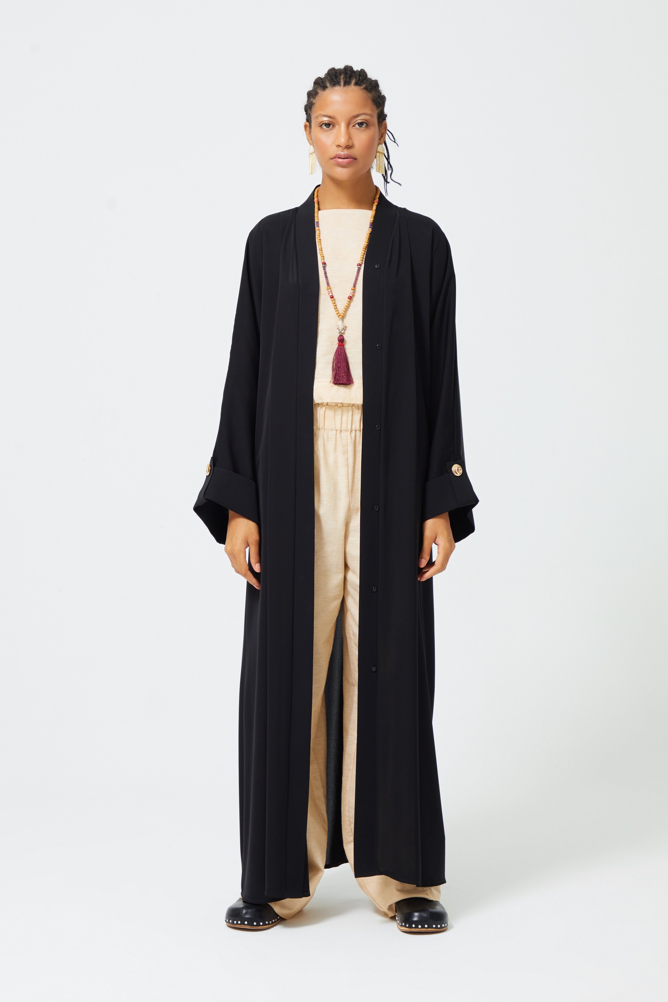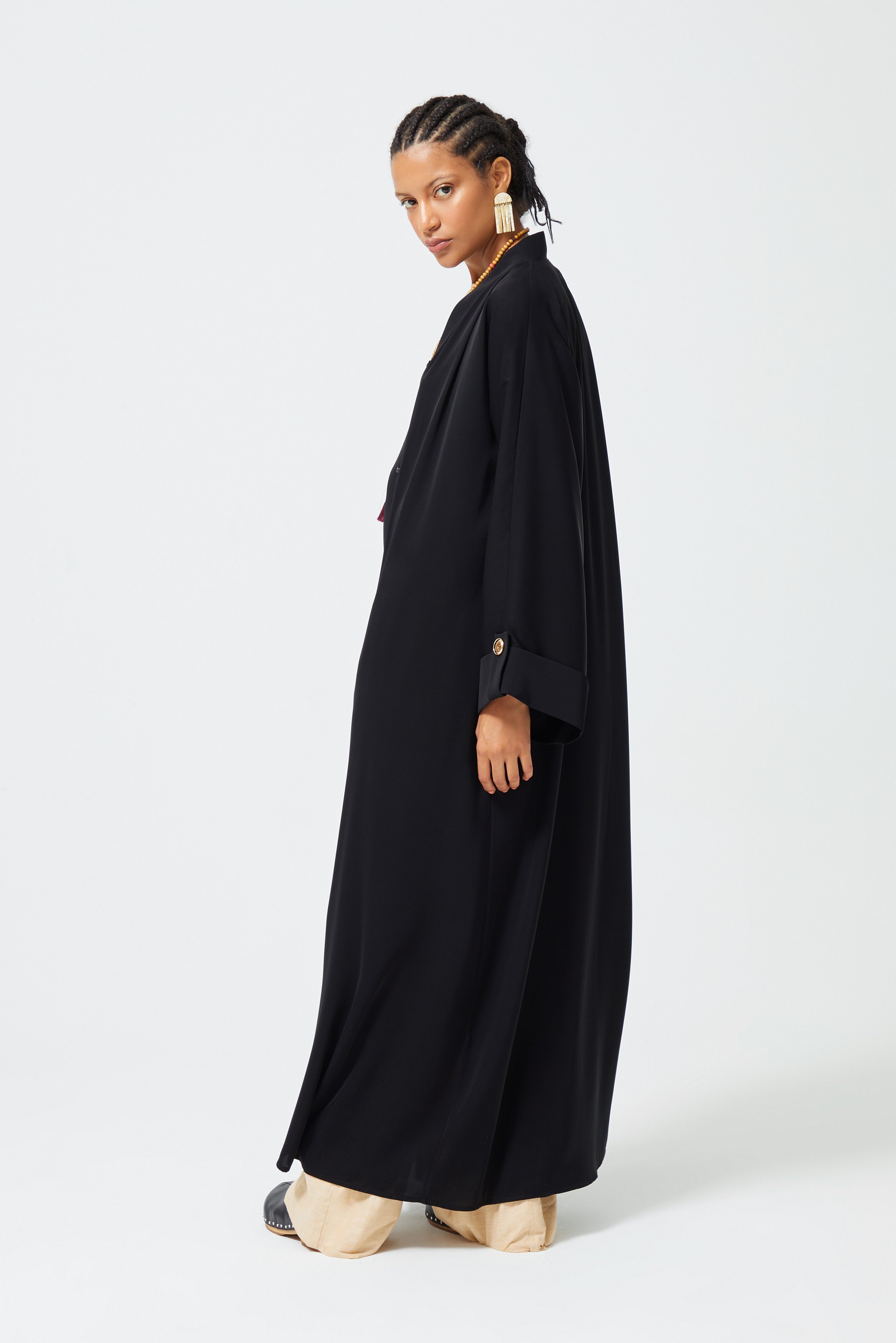 Apolet Kol Düğme Detaylı Abaya Siyah