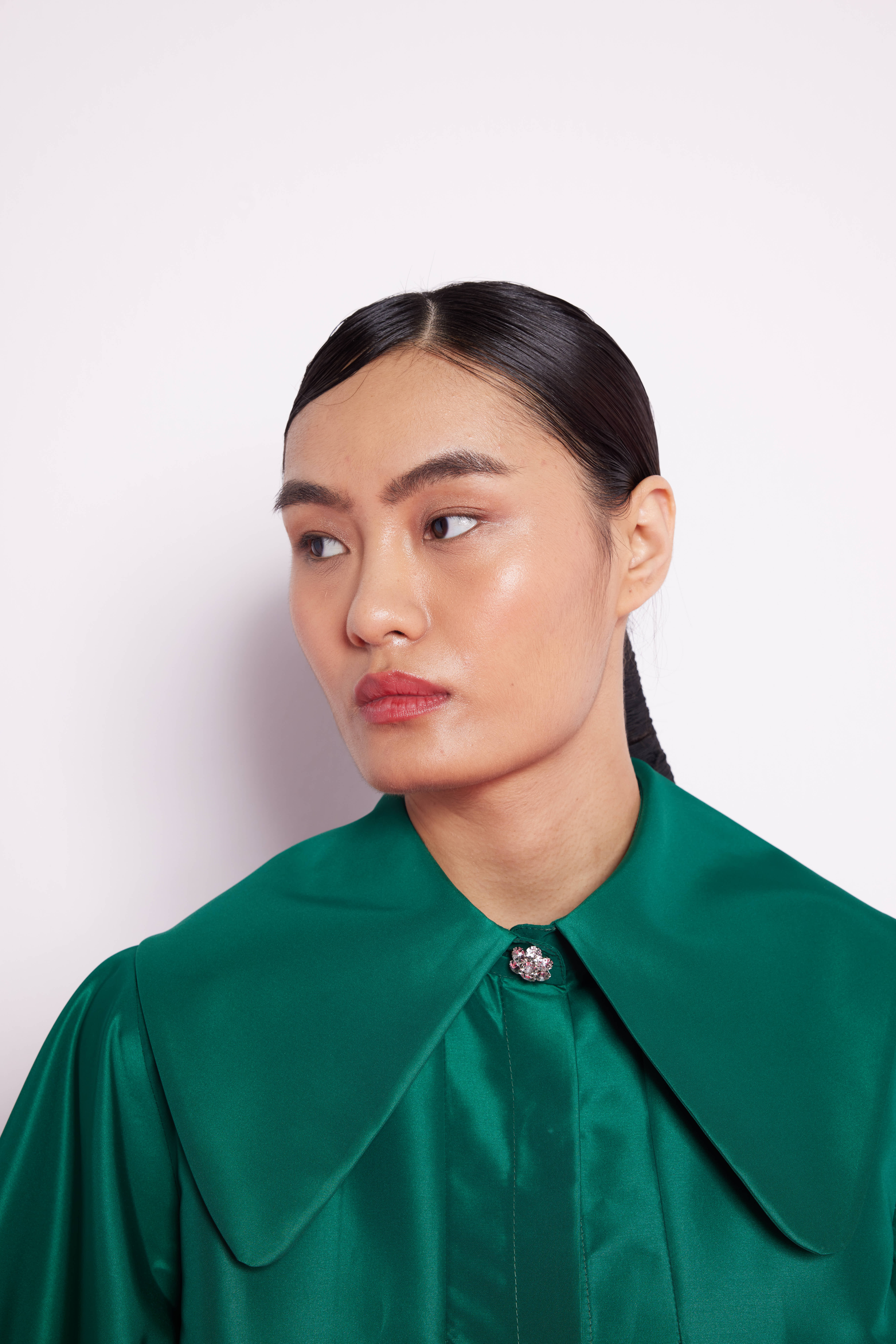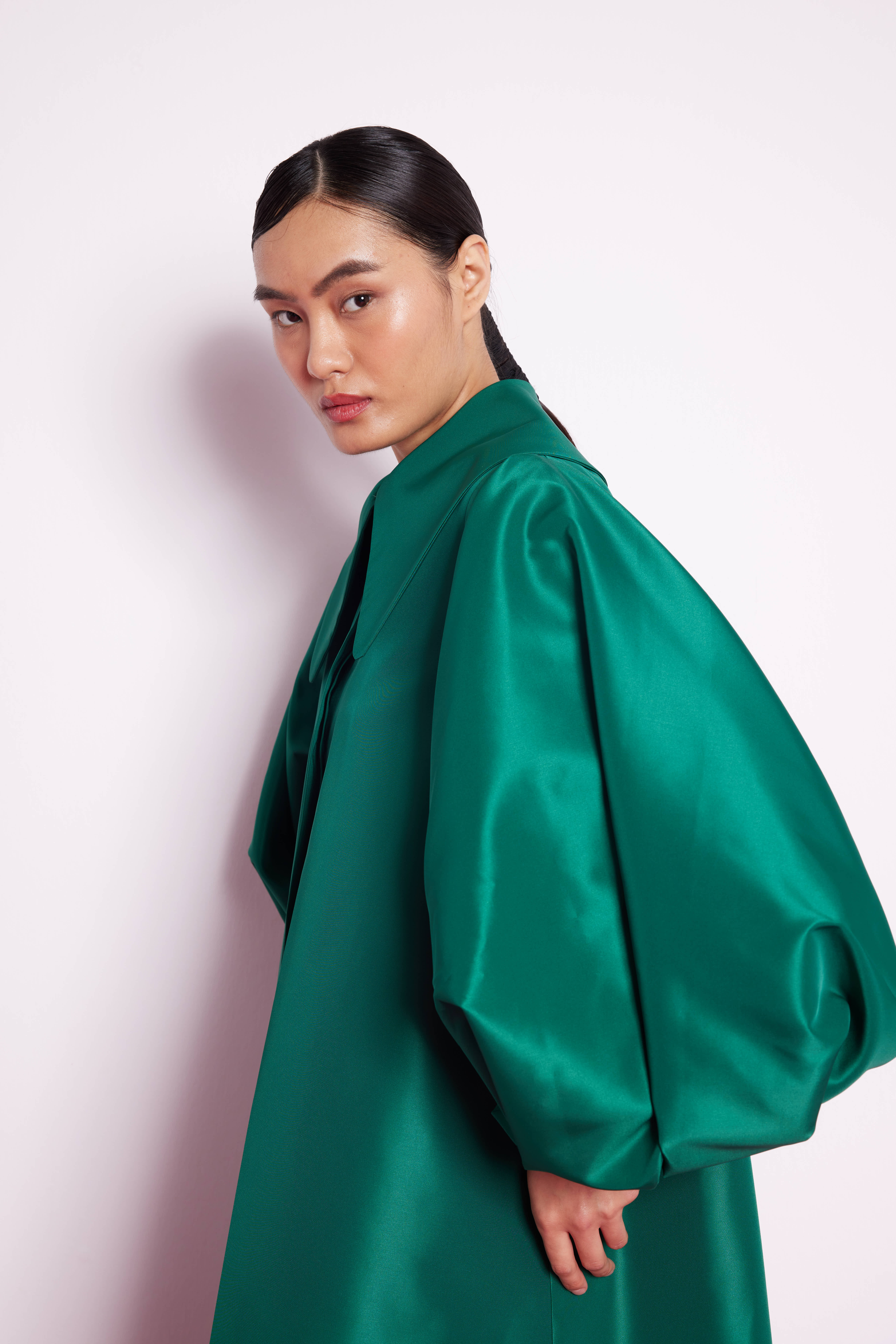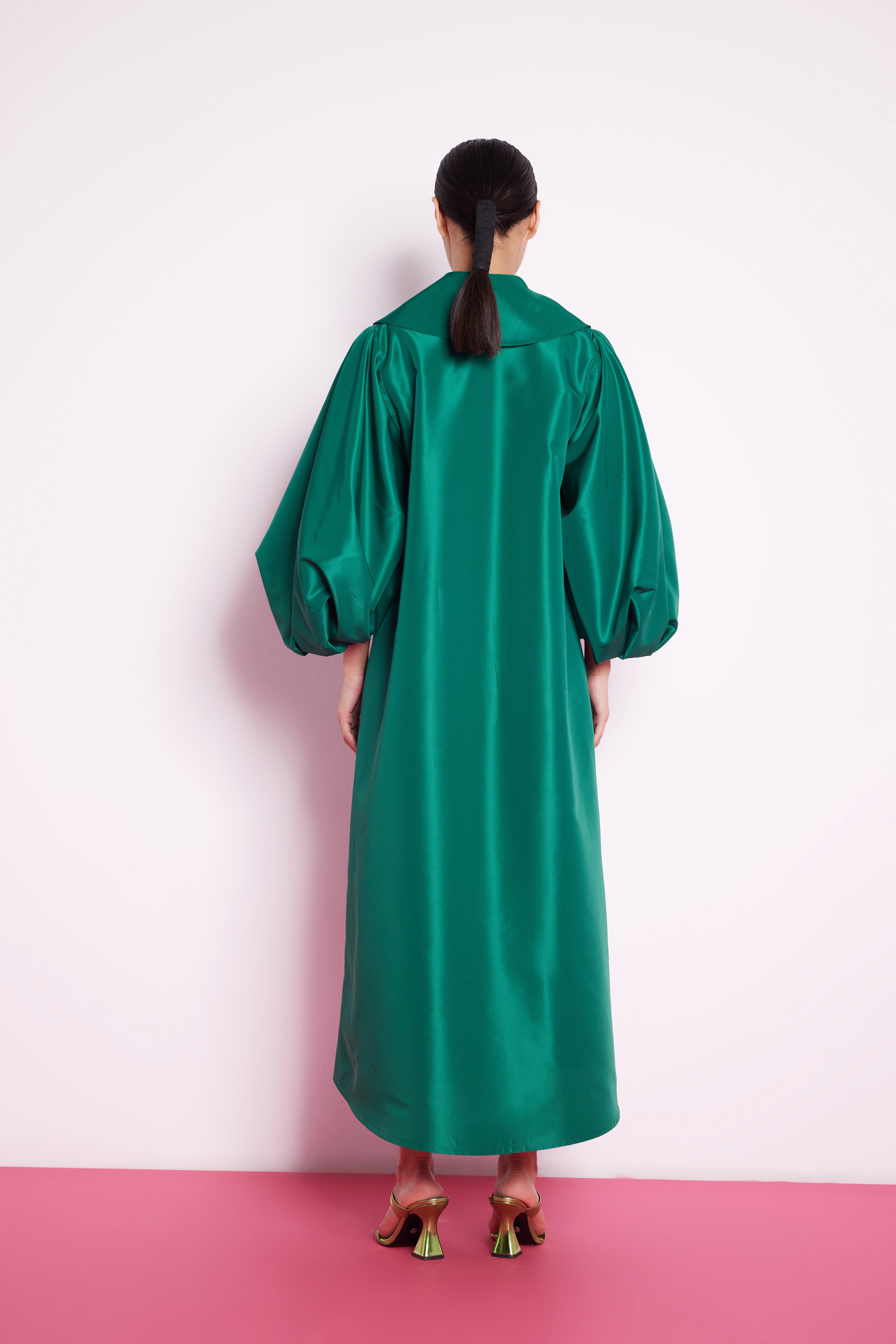 Balon Kollu Tafta Elbise zümrüt Yeşili
