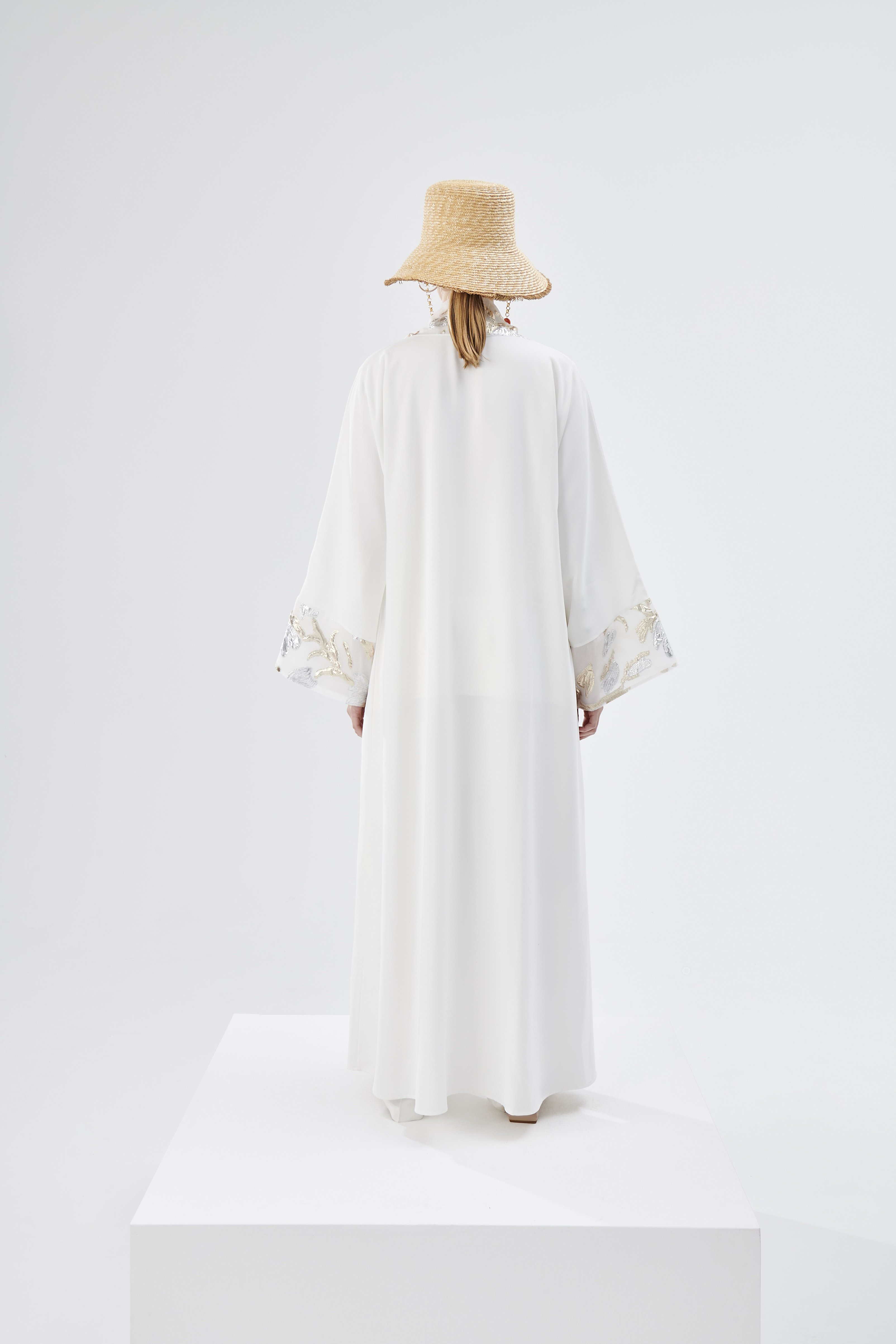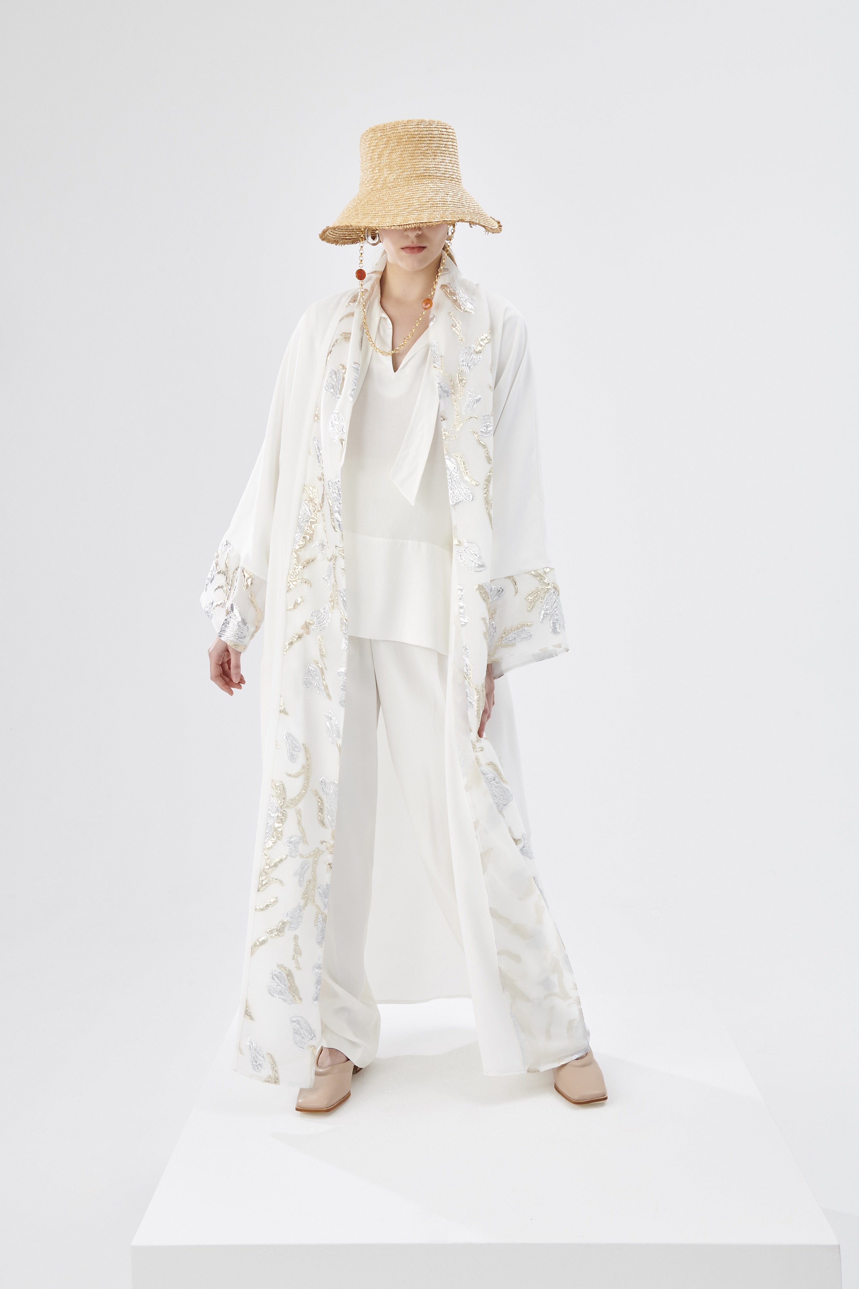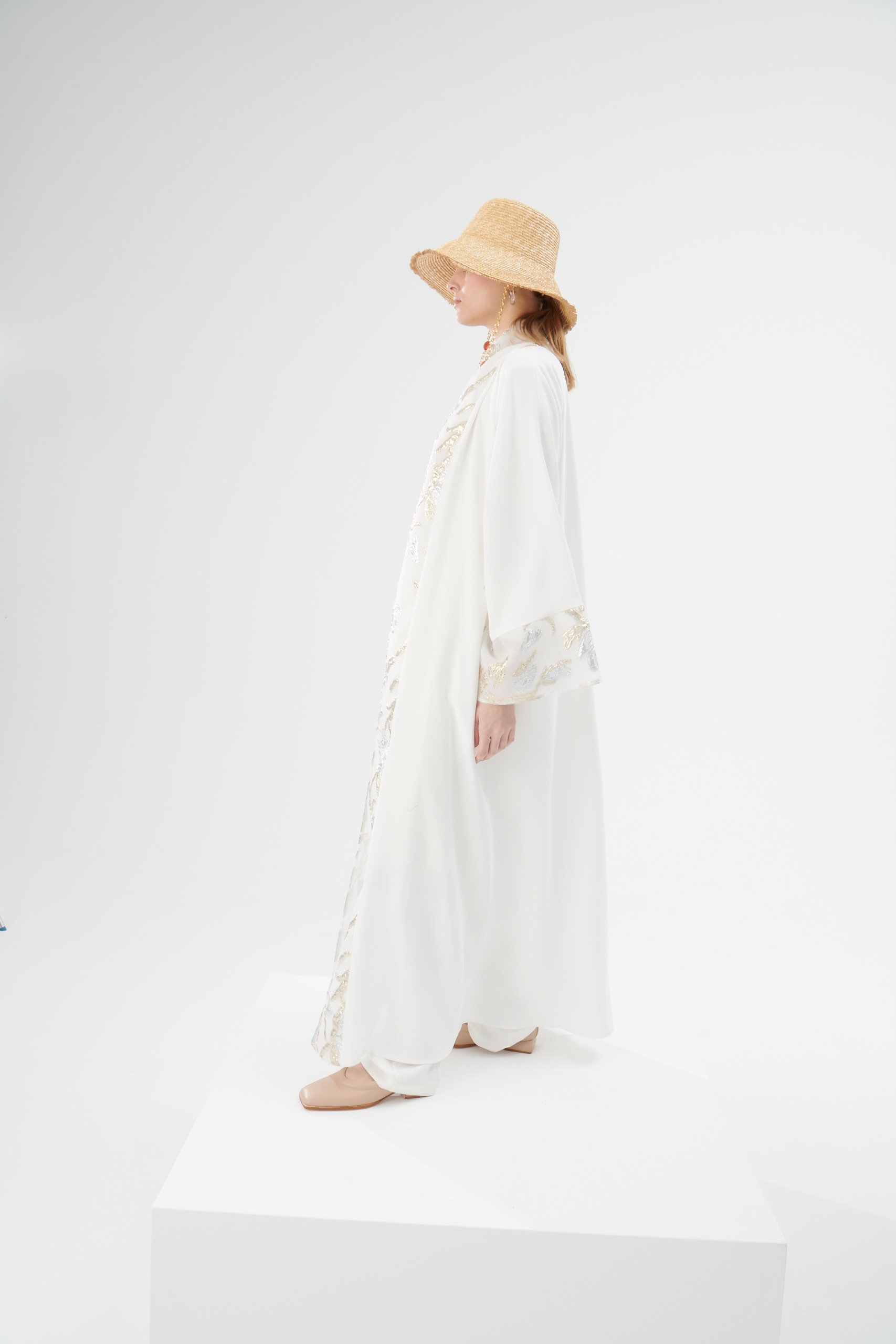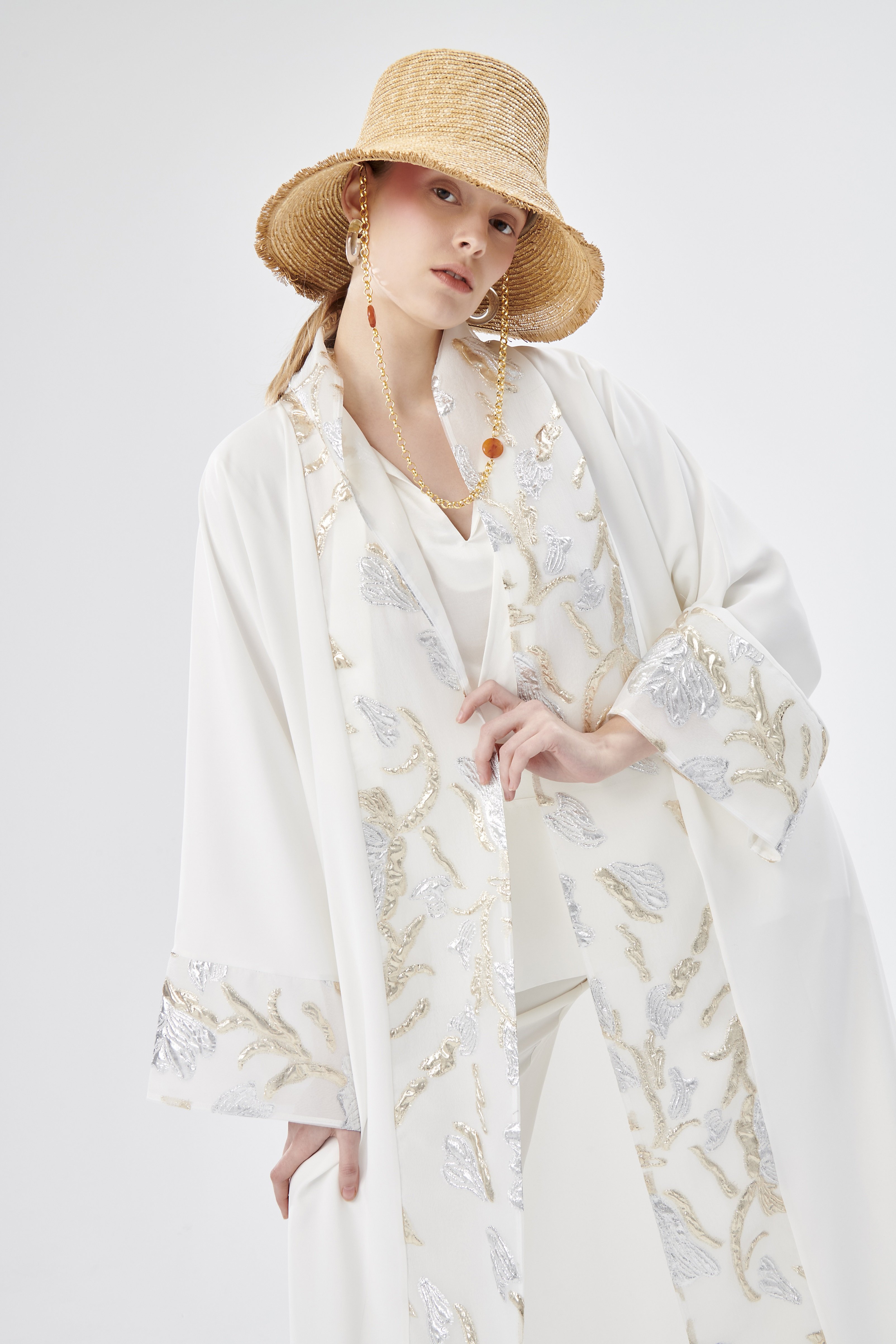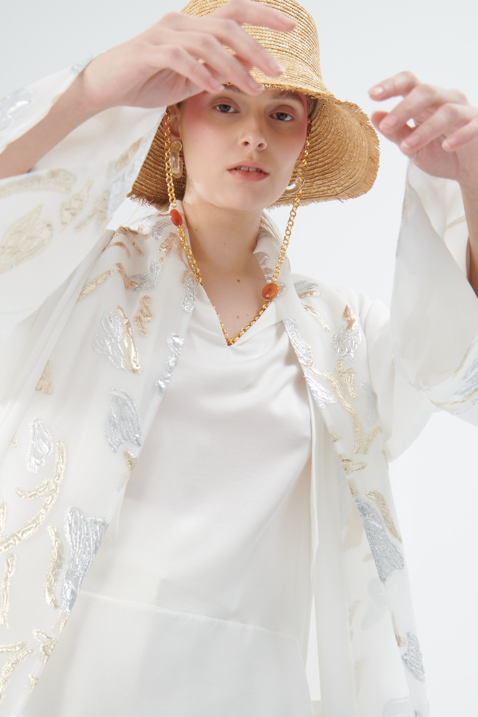 Ürün Özellikleri: Brokar Garni Detay, Şal yaka, Astarsız, Kuşaklı