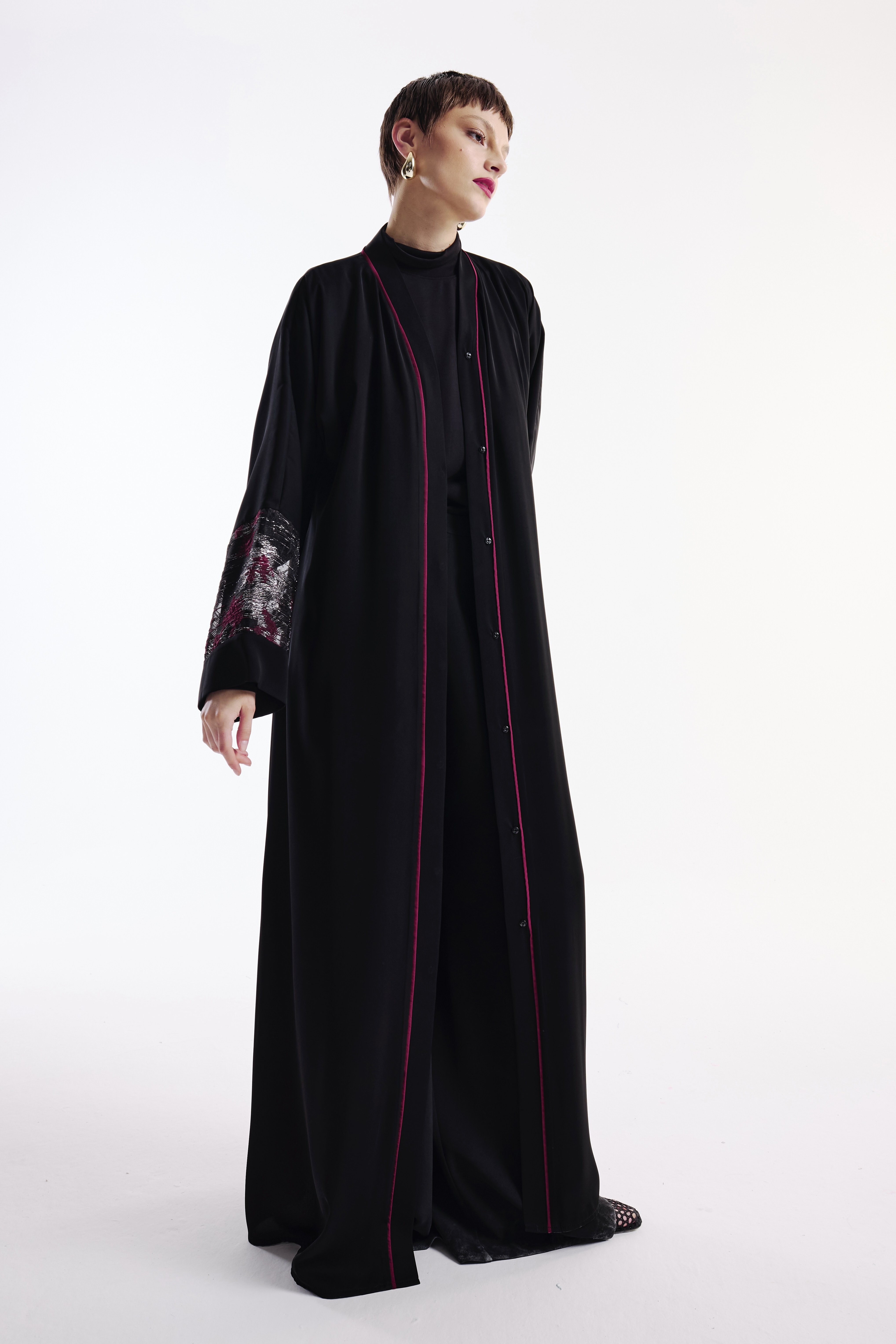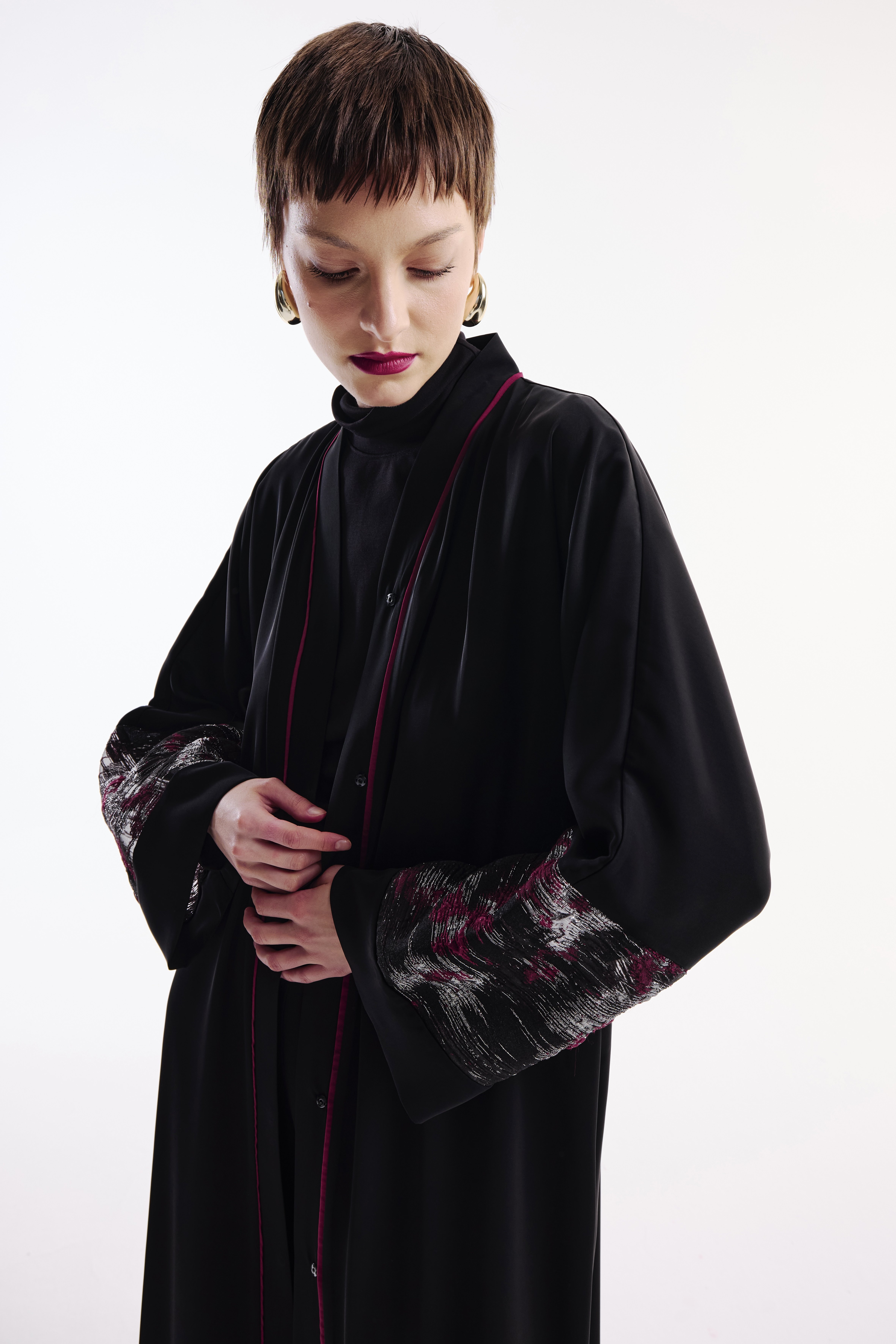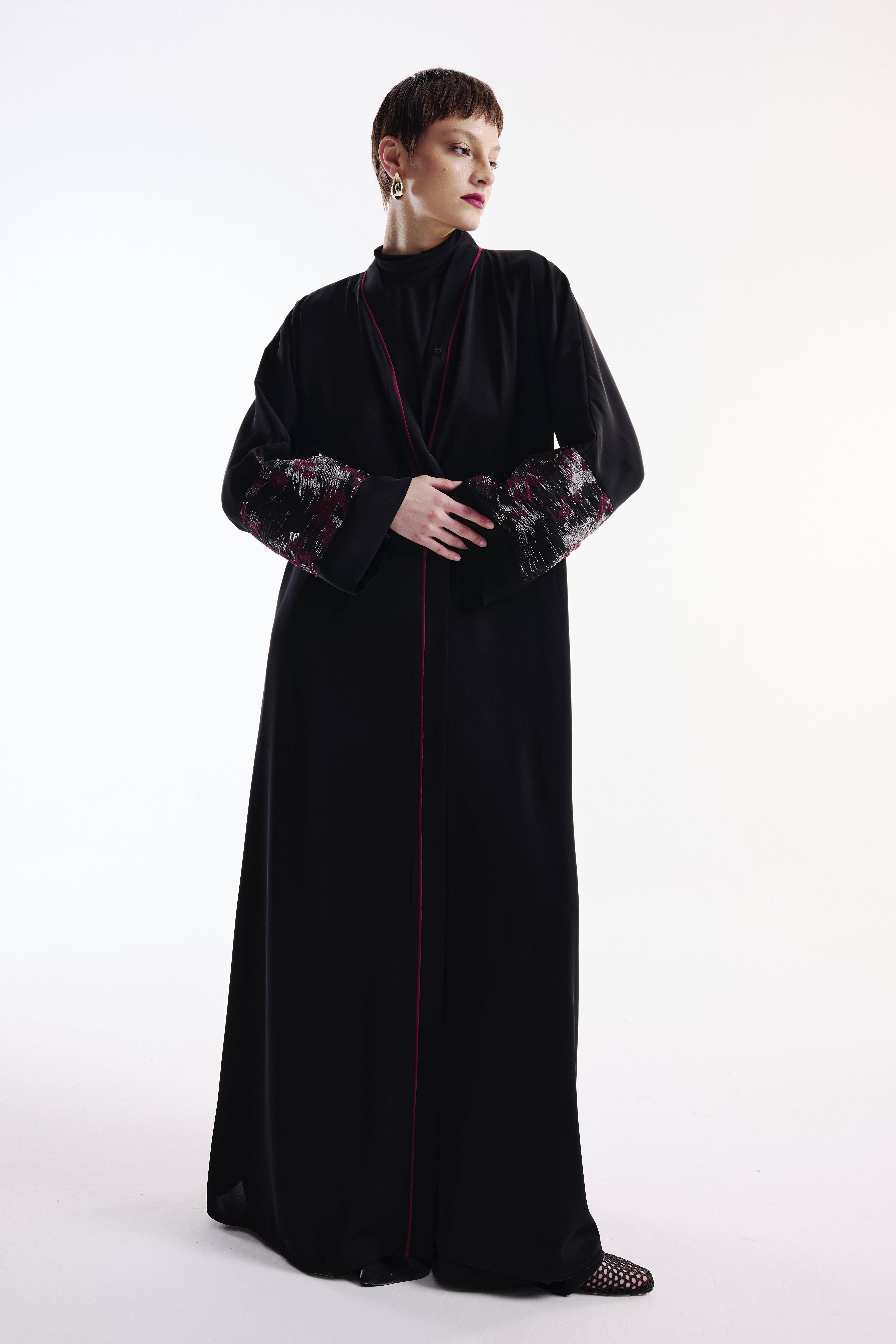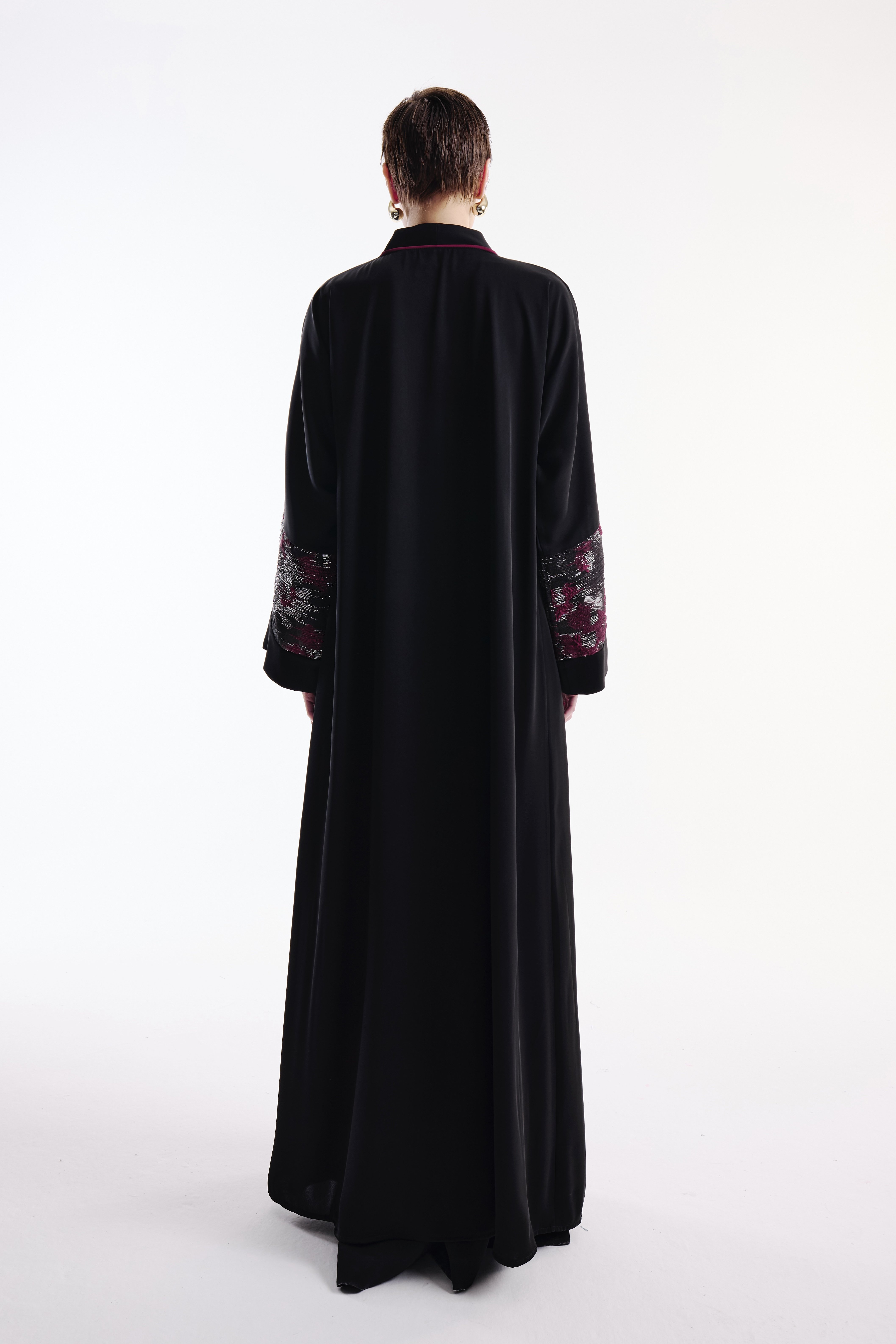 Brokar Kollu Bordo Biyeli Abaya