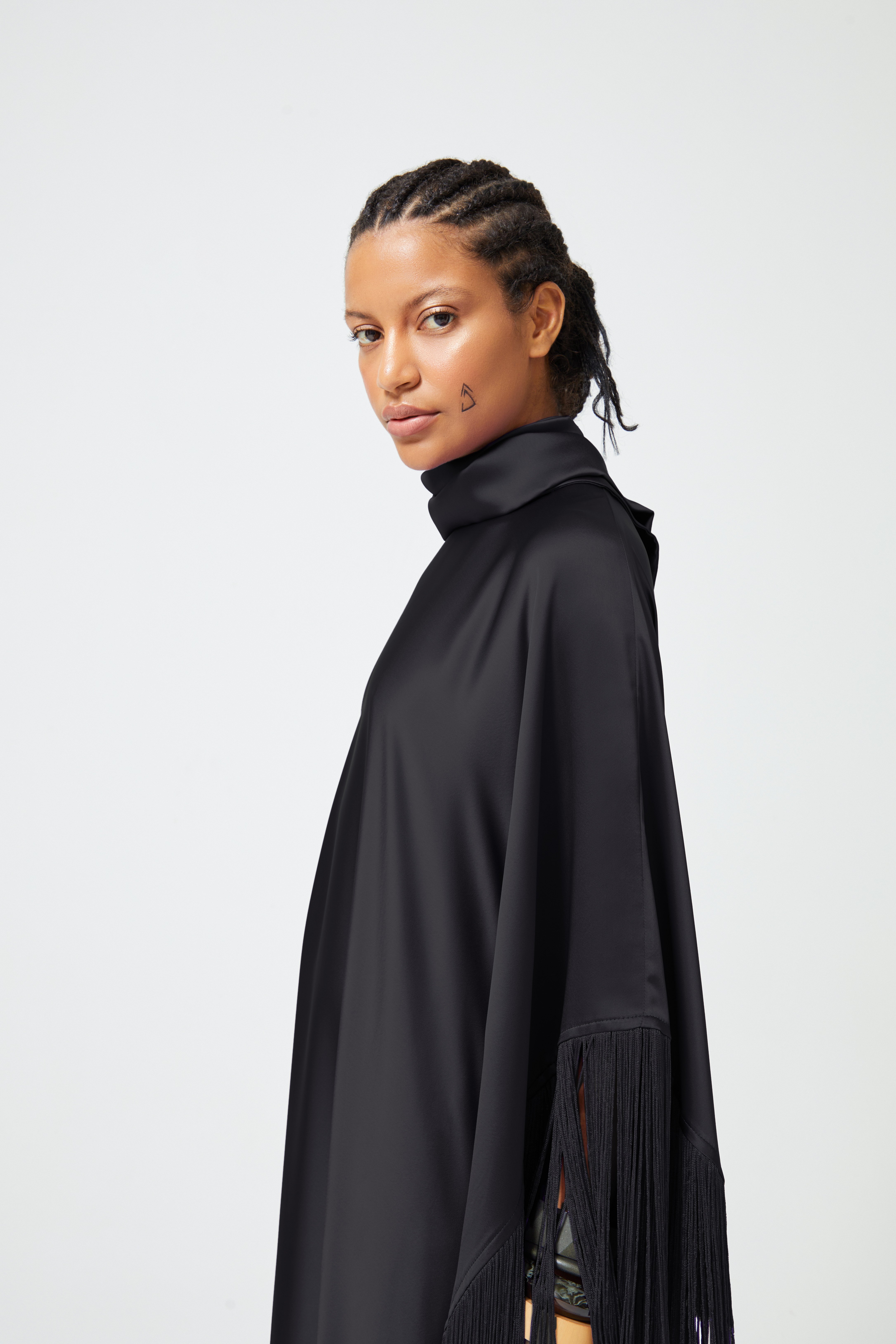 Ürün Özellikleri: Degaje Yaka, Saçak Detaylı