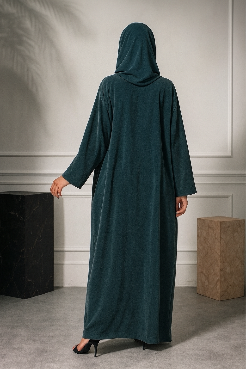 İpek Cupro Abaya Yarasa Kalıp Ördek Yeşili & Şal