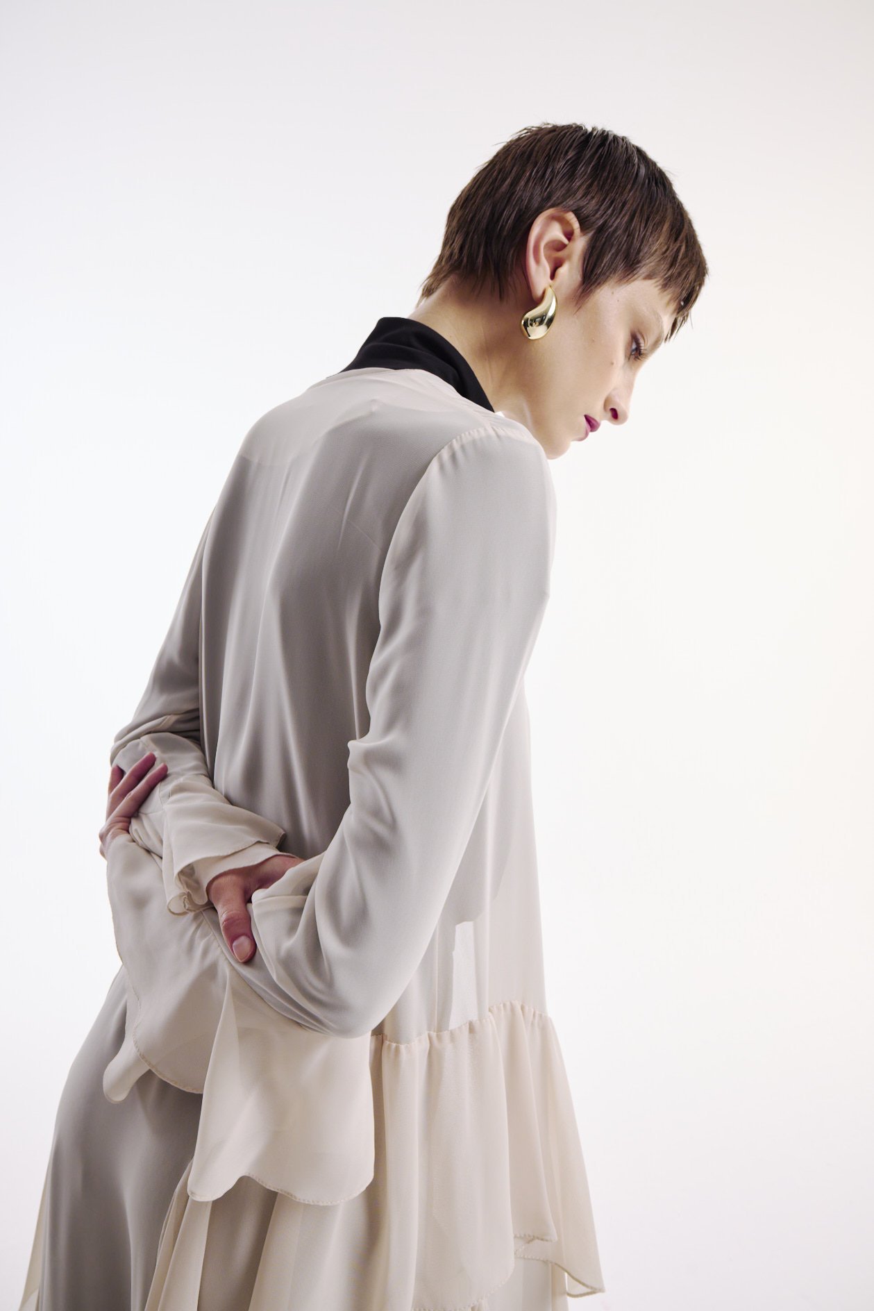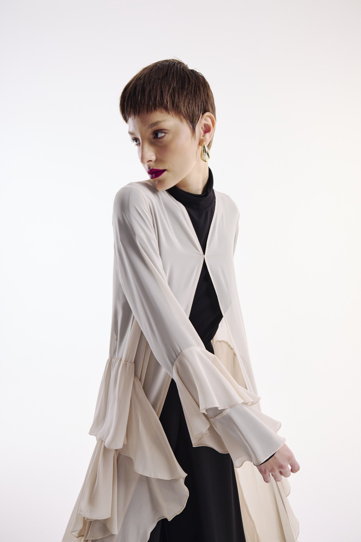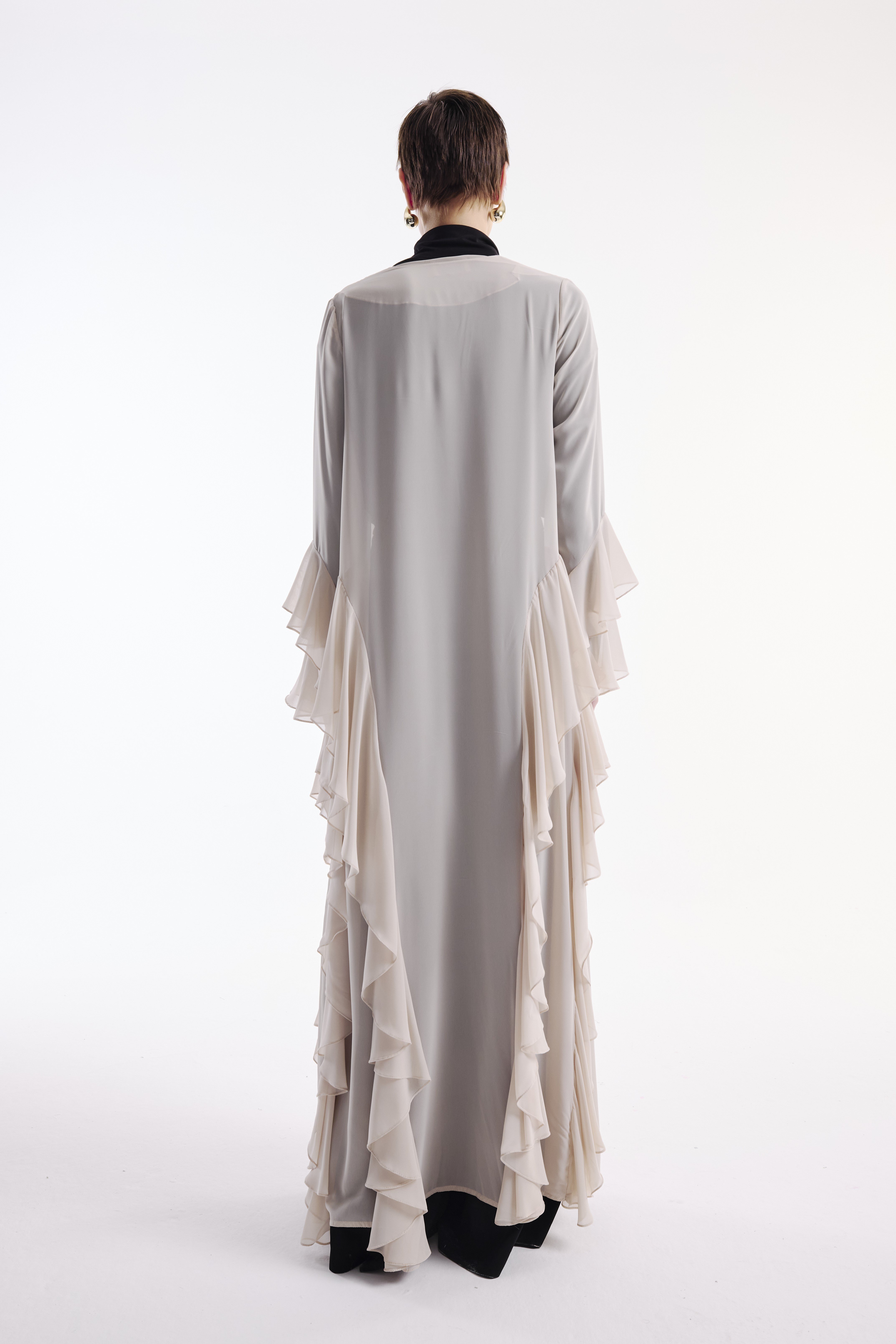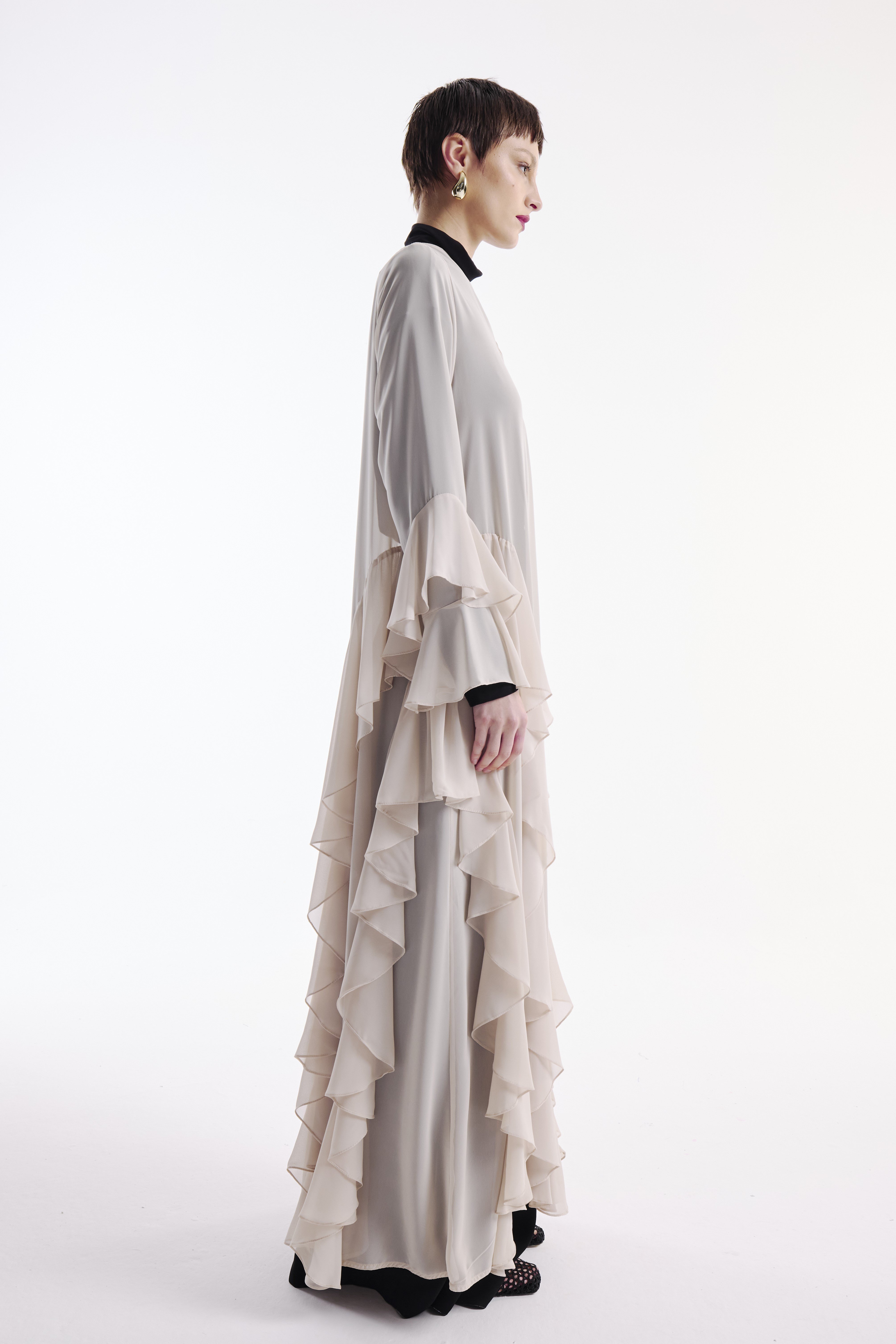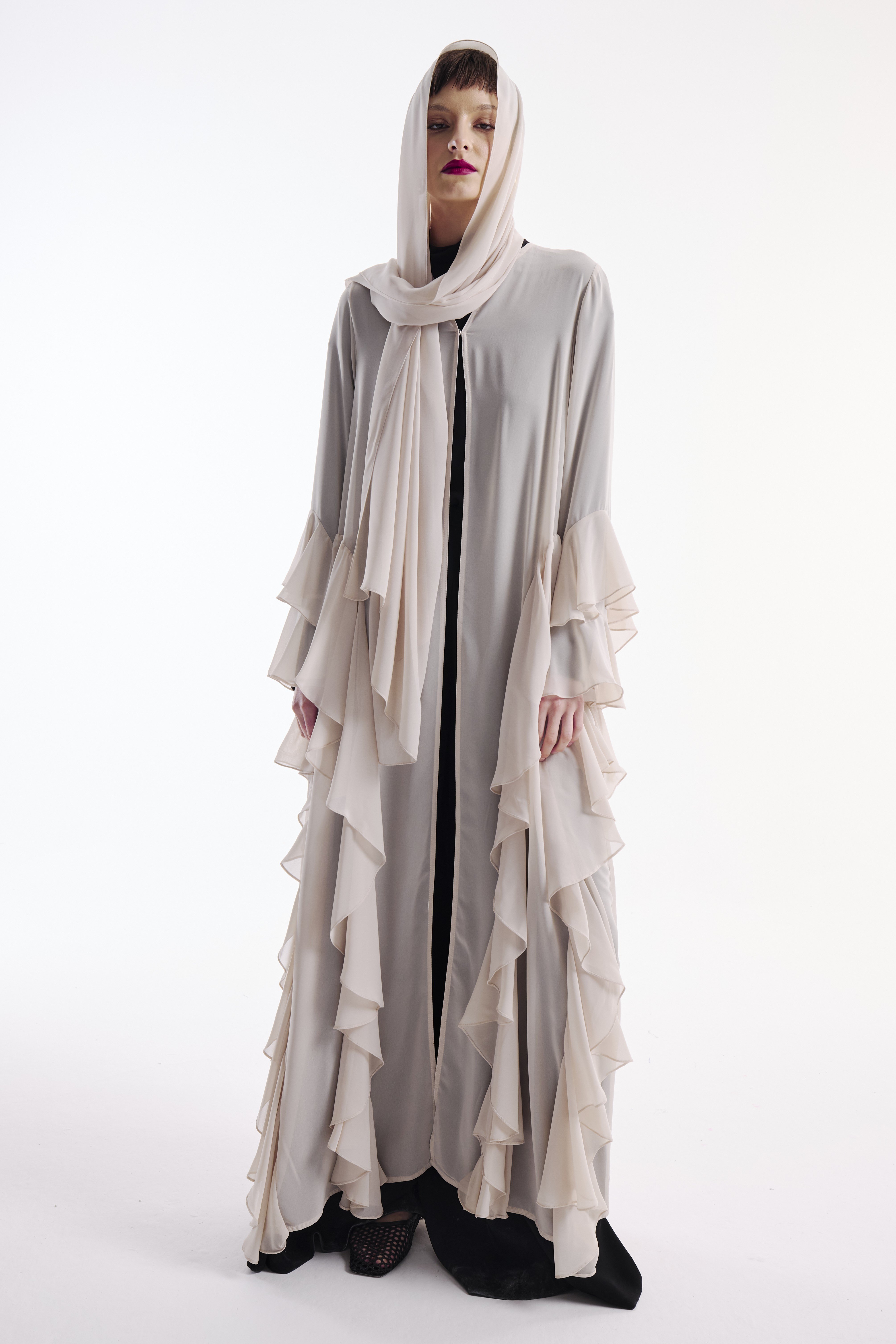 Şifon Abaya Volan Detaylı Nude+ Şal